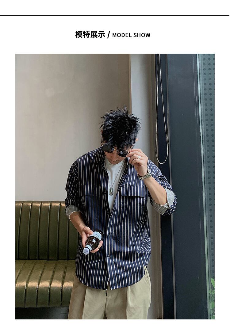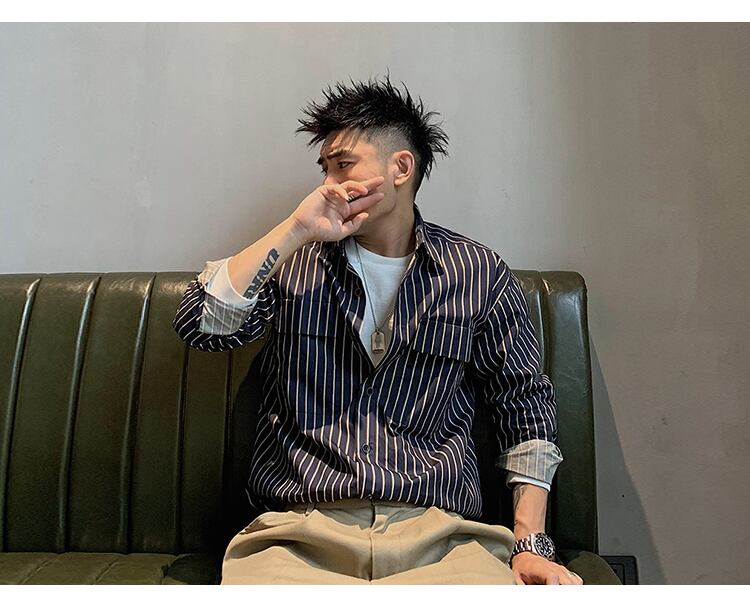 ストライプシャツ カジュアルジャケット ロング Xu_Tailang41549431701