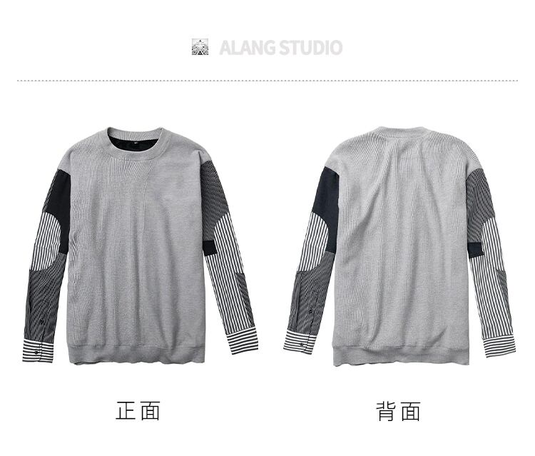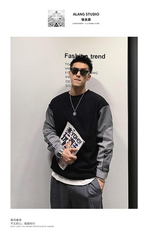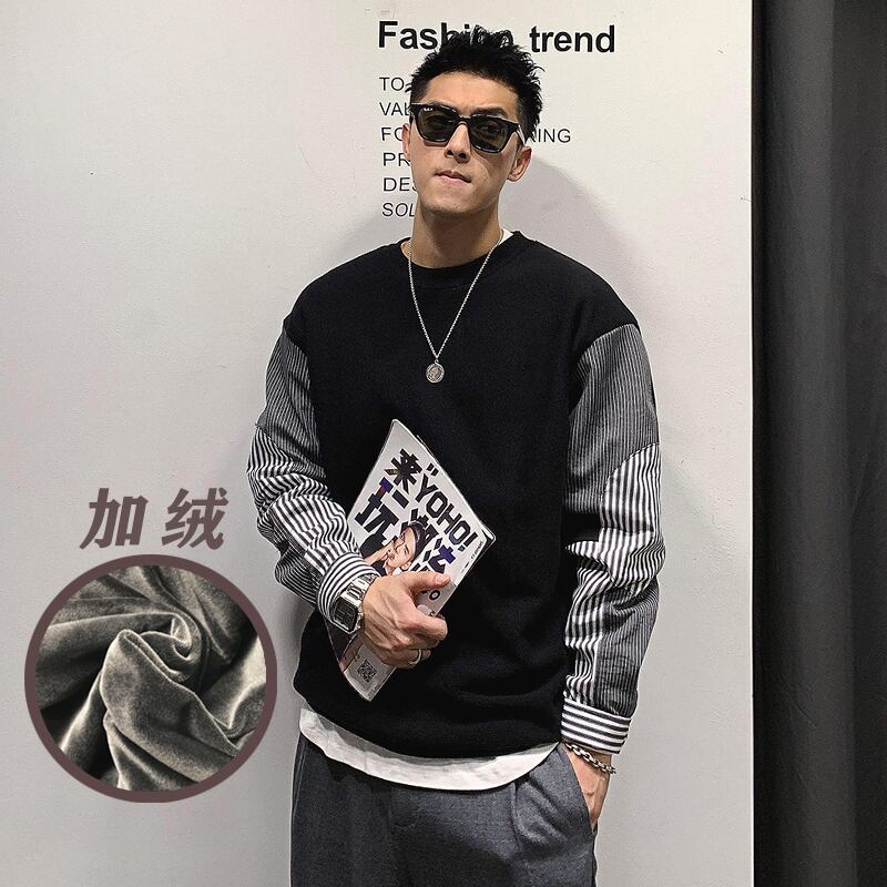 ストライプセーター ベルベットウィンタースタンダードラウンドネック レトロ 冬物 Oネック ステッチ Xu_Tailang54302941708