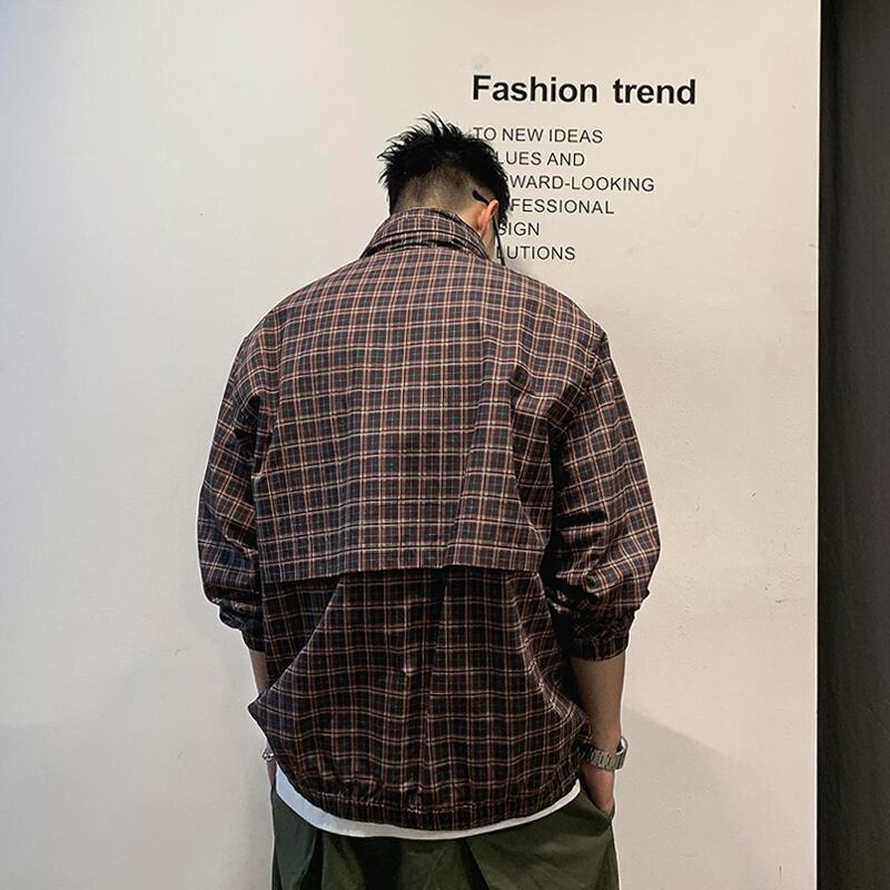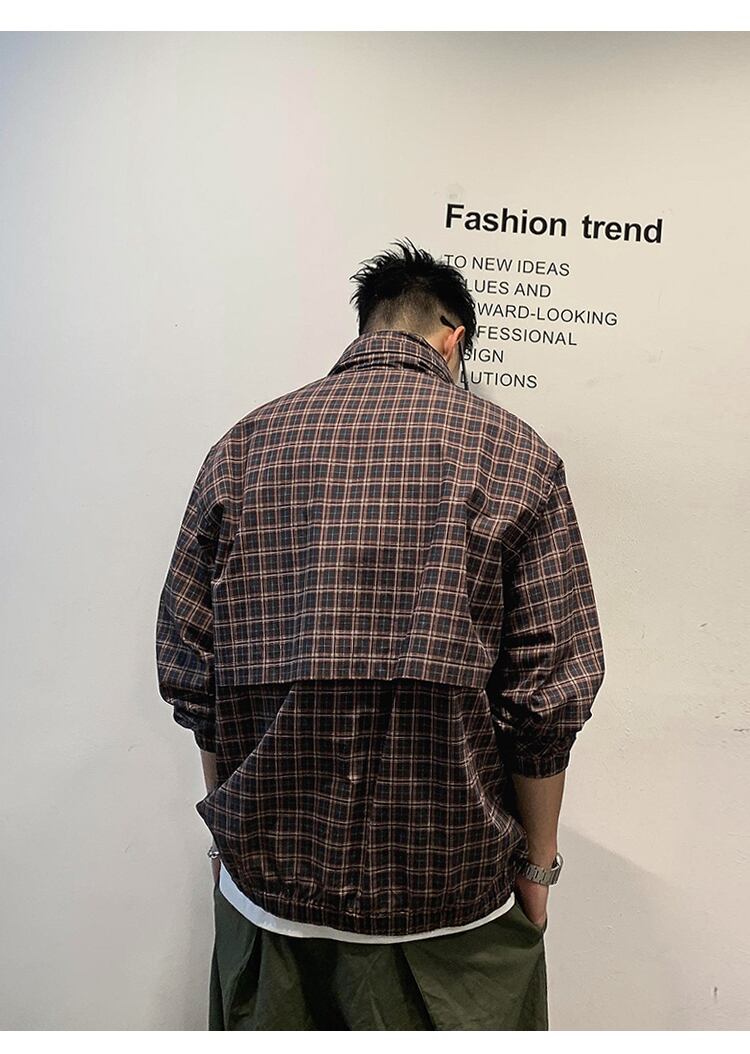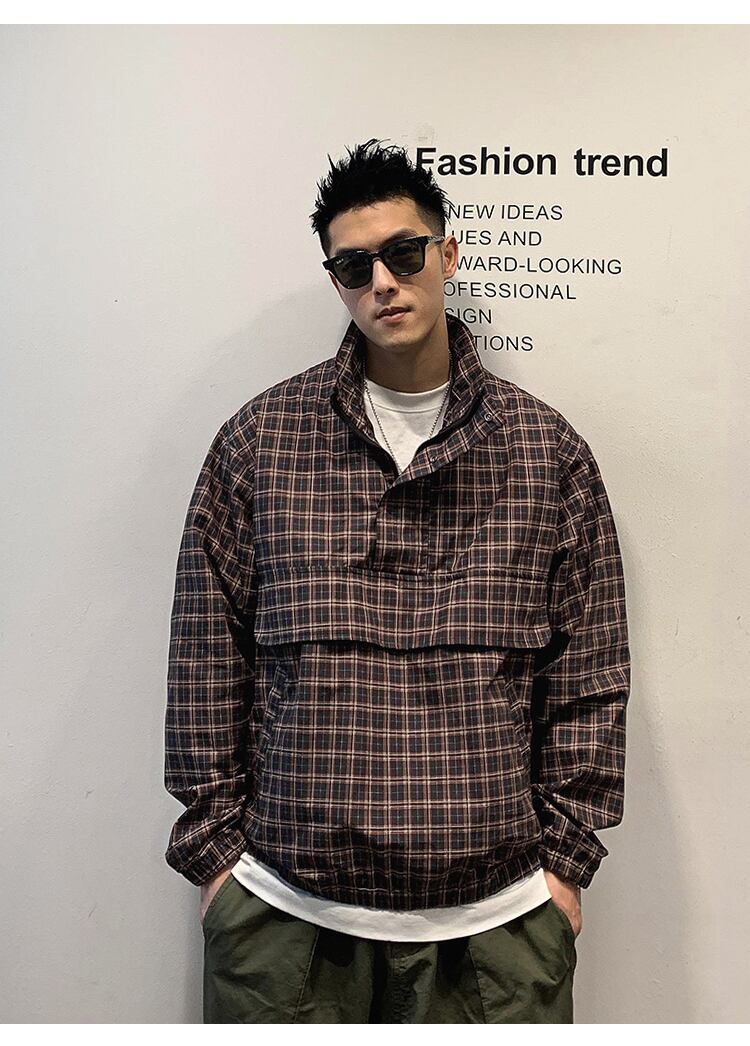 ジッパープルオーバー ジャケット スタイル格子柄シャツ スプリングカラー 春物 Xu_Tailang32037891910