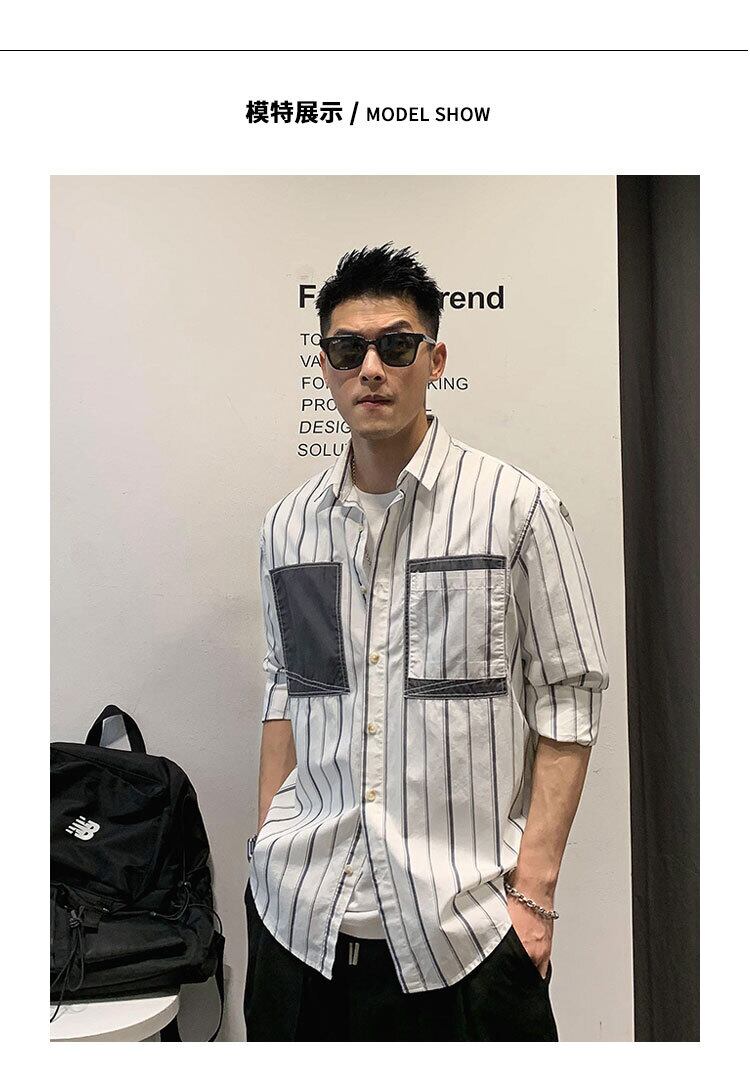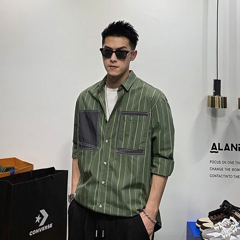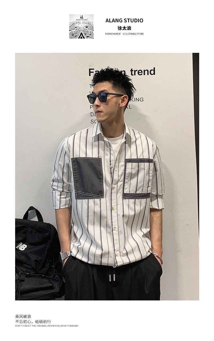 ストライプシャツ ポケットジャケット ロング ステッチ Xu_Tailang43881115573