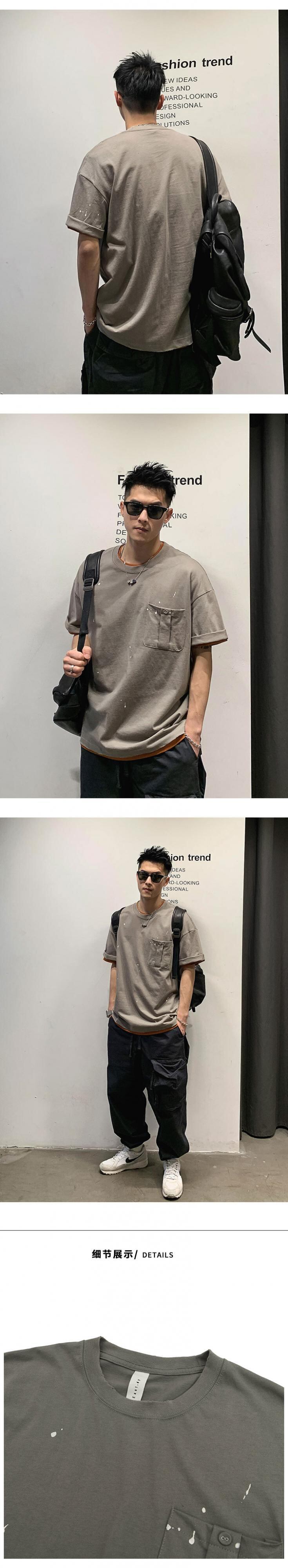 スリーブTシャツ ポケット半袖 コットン ハーフスリーブ Xu_Tailang4475312459