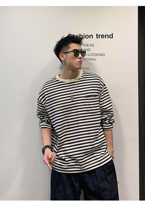 ストライプTシャツ シャツ スプリングオータムカジュアル ロング 春物 秋物 Xu_Tailang80332064324