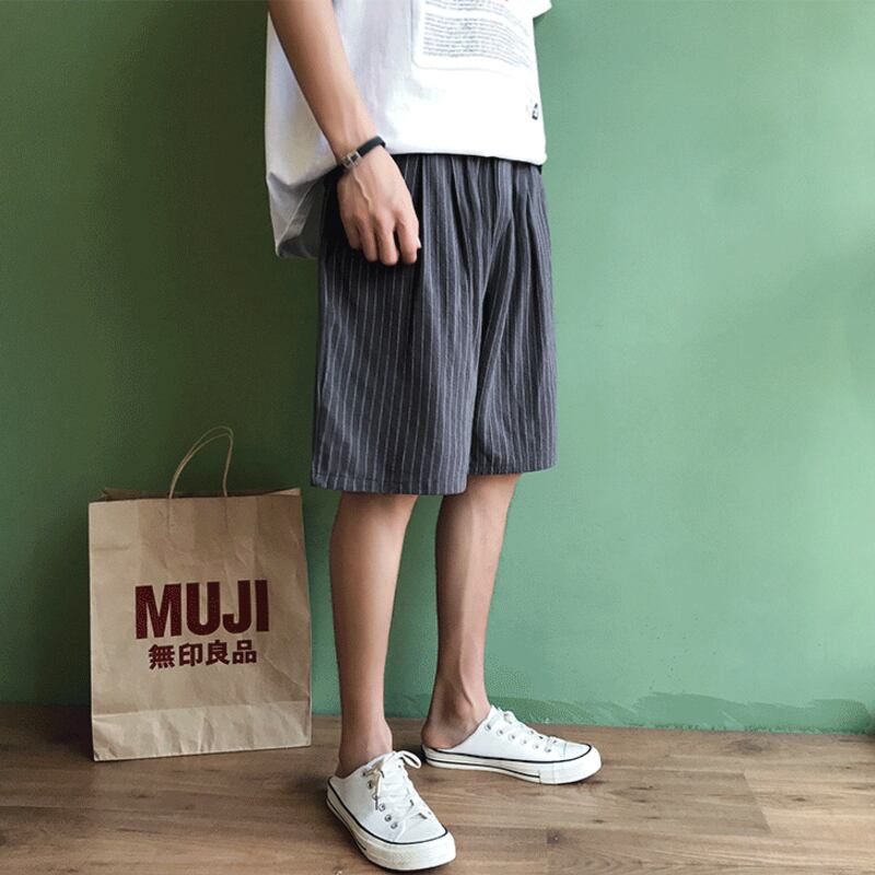 ダークストライプカジュアルショーツ パンツ サマー薄手ルーズ 大きめサイズ 夏物 ブルマー ASURAプラスサイズメンズ61926553677