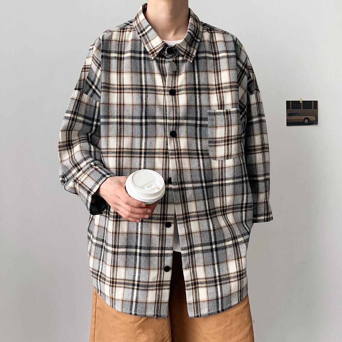 ロングシャツ カジュアルルーズスプリングサマースタンダード レトロ 大きめサイズ 春物 夏物 ASURAプラスサイズメンズ81534975270