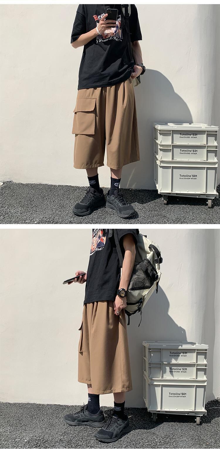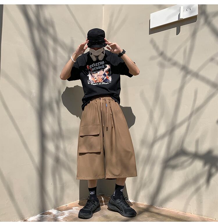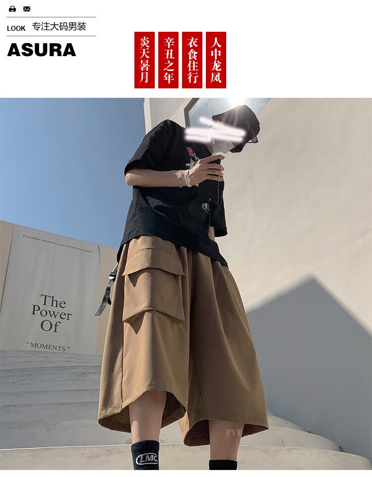 薄手クロップドショートショーツ ルーズサマーカジュアル 大きめサイズ 夏物 ブルマー ASURAプラスサイズメンズ63434718680