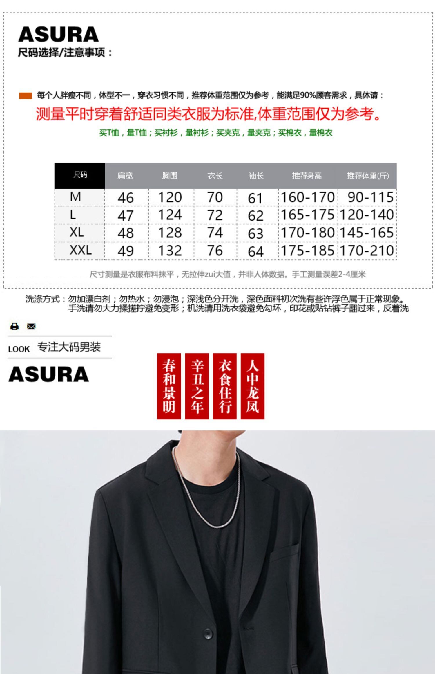 ソリッド カラージャケット ルーズスプリングサマーカジュアルスタイル 大きめサイズ 春物 夏物 ソリッドカラー ASURAプラスサイズメンズ50690291932