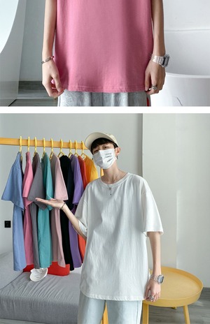 Tシャツ シャツ ルーズラウンドネックサマー コットン 大きめサイズ 夏物 Oネック ASURAプラスサイズメンズ2910640464