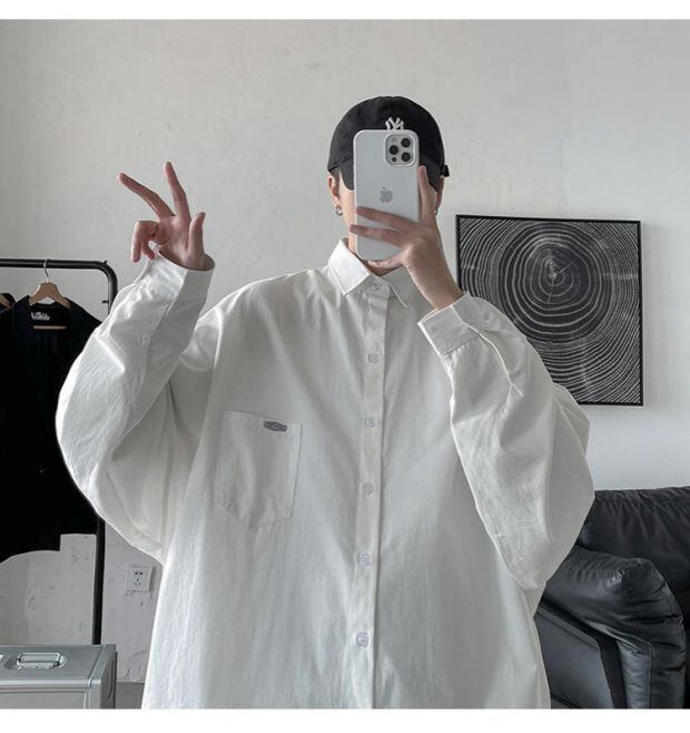 ホワイトシャツ ジャケット ルーズカジュアルスプリングオータム ロング 大きめサイズ 春物 秋物 ASURAプラスサイズメンズ95391336799