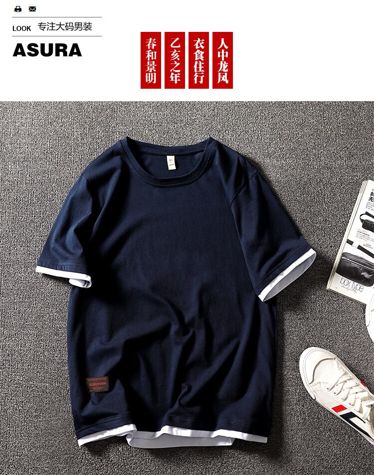 シャツ ルーズラウンドネックサマー コットン 大きめサイズ 夏物 Oネック Tシャツ ASURAプラスサイズメンズ7160189613