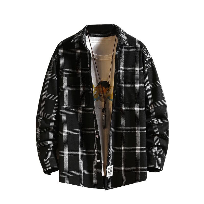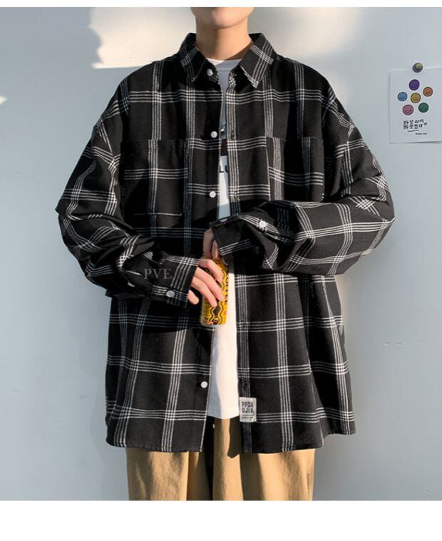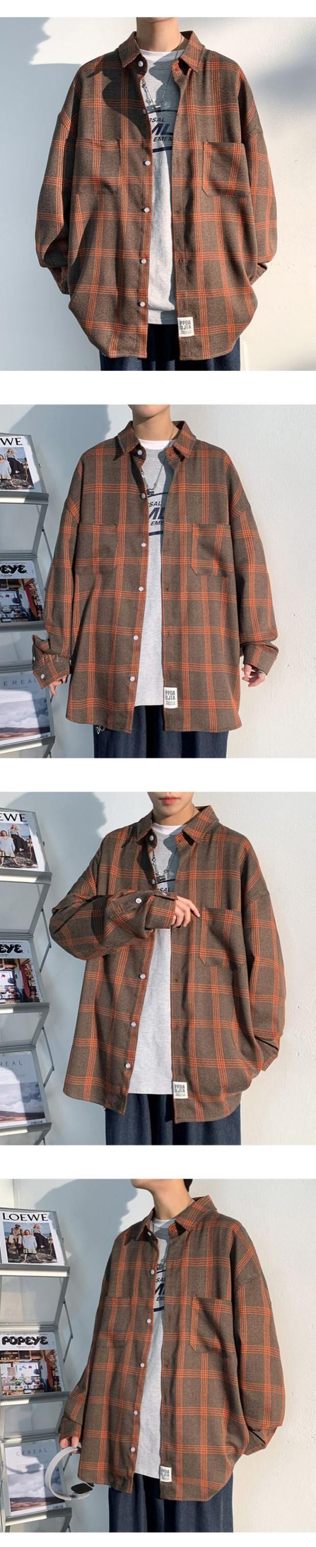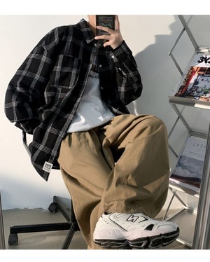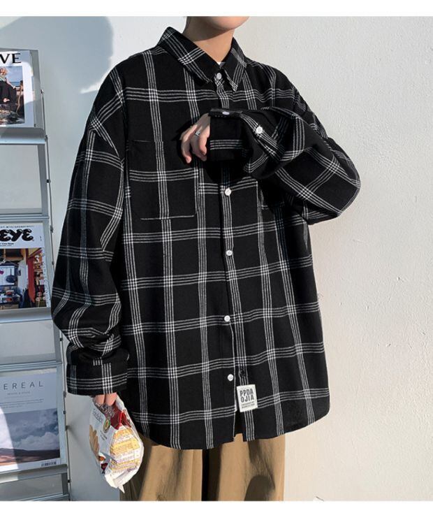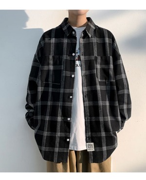 格子柄シャツ ルーズスプリングオータムカジュアル ロング 大きめサイズ 春物 秋物 ASURAプラスサイズメンズ38371560139