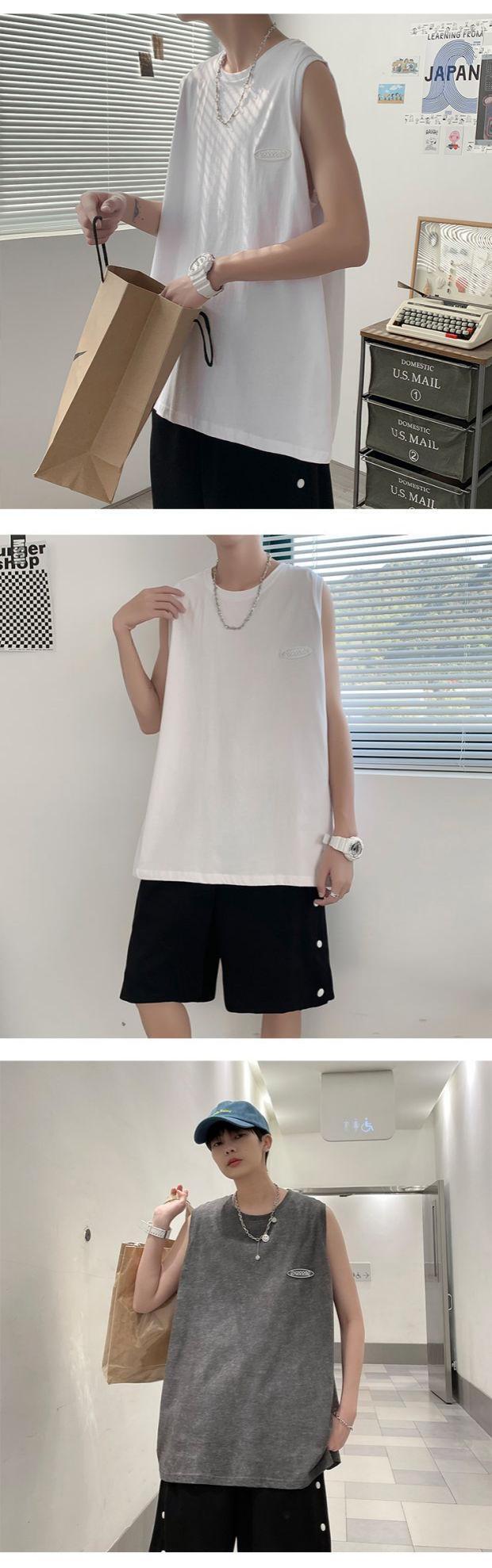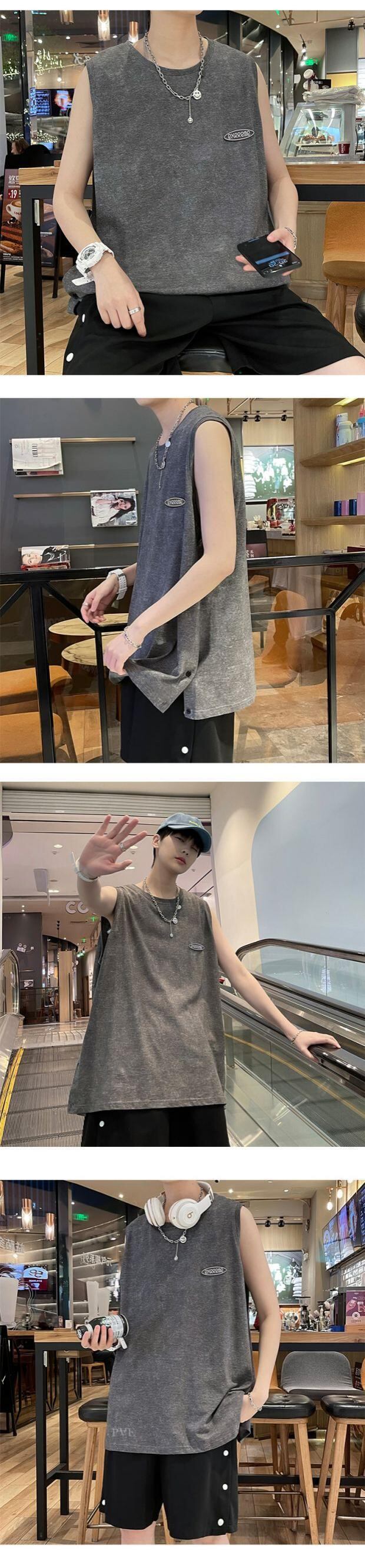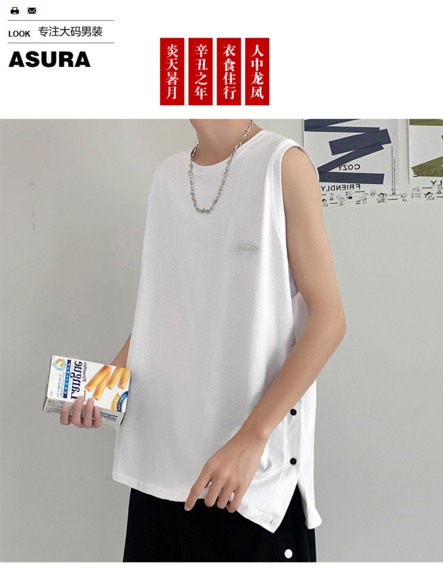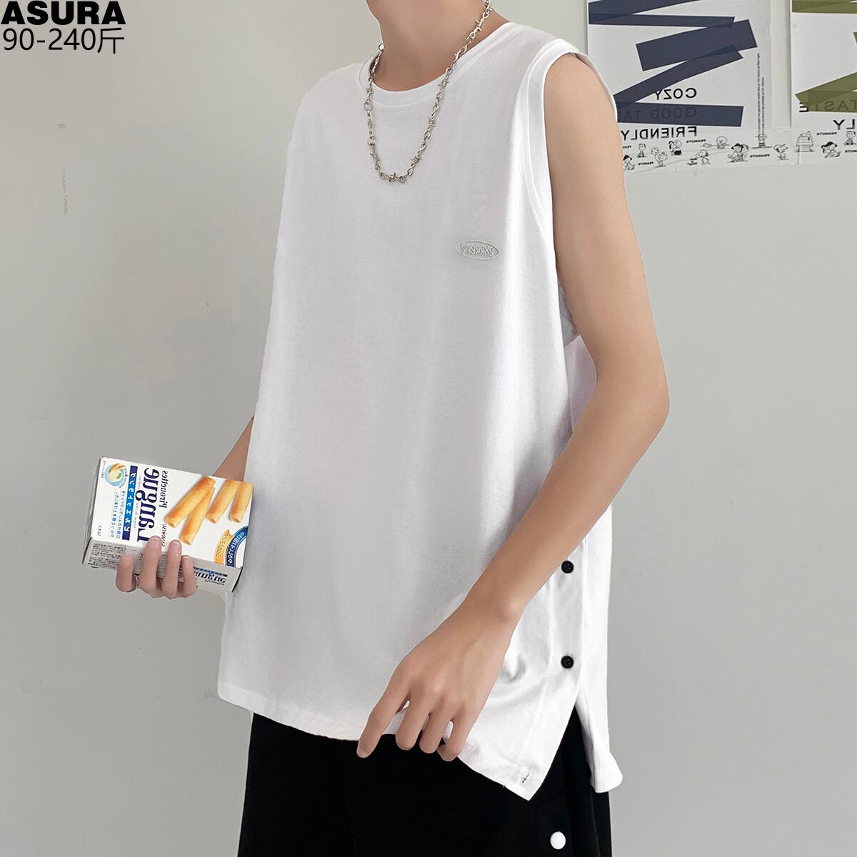 スリットバックルルーズノースリーブTシャツ サマー ストリート 大きめサイズ 夏物 ASURAプラスサイズメンズ97661352949