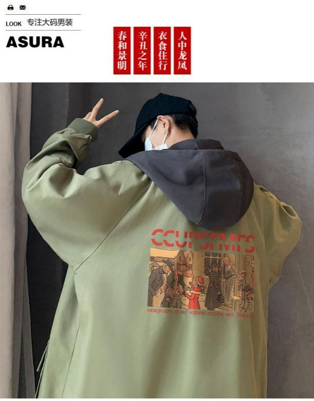 ジャケット コート ルーズフードカジュアルスプリング ストリート 大きめサイズ 春物 ASURAプラスサイズメンズ71269830875