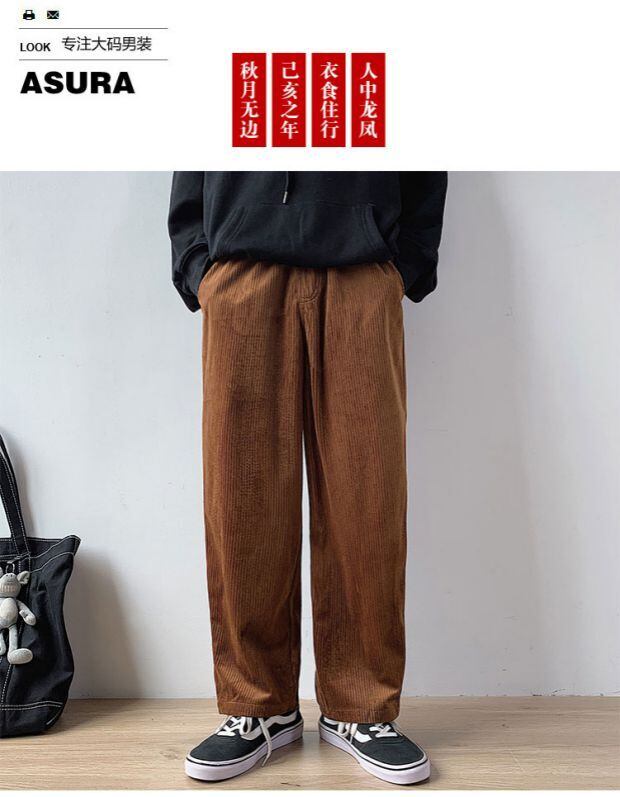コーデュロイカジュアルパンツ ルーズスプリングオータムスタンダード レトロ 大きめサイズ 春物 秋物 ASURAプラスサイズメンズ6074621829