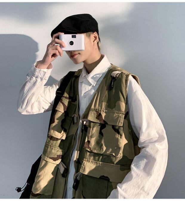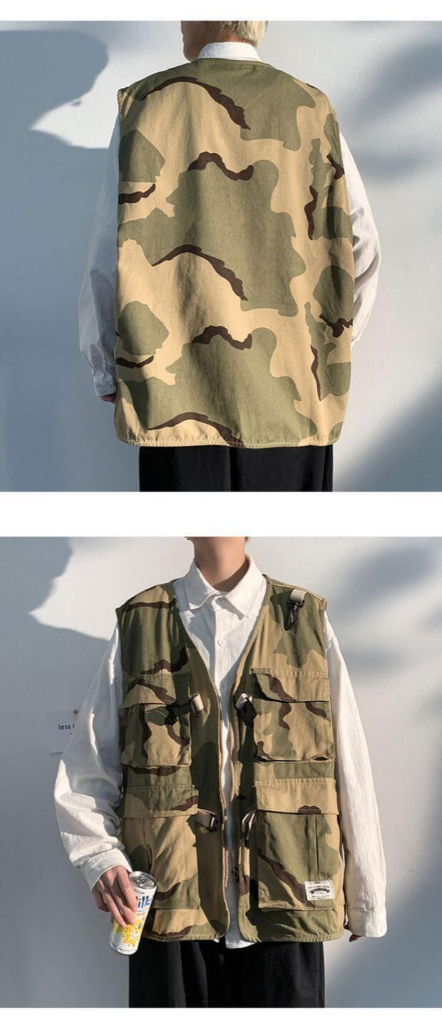 迷彩柄スプリングジャケット スタンダード レトロ 大きめサイズ 春物 ポケット多め マルチポケット ASURAプラスサイズメンズ4330156396