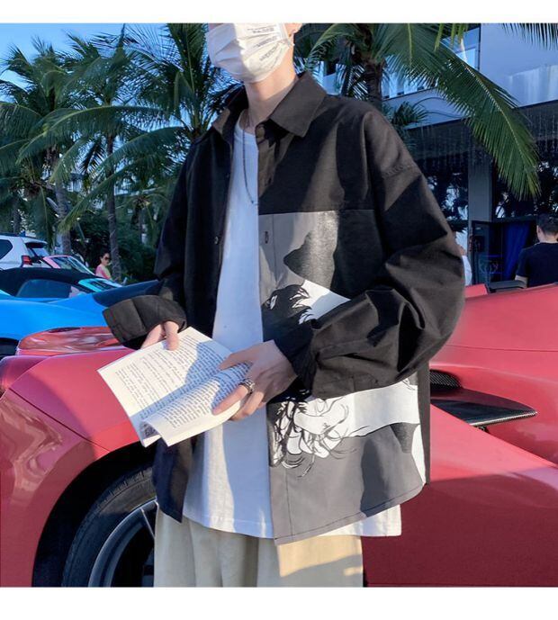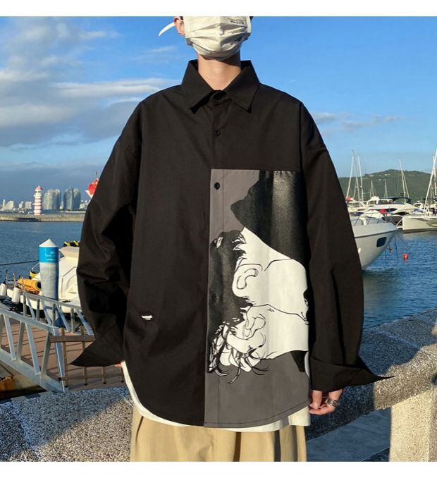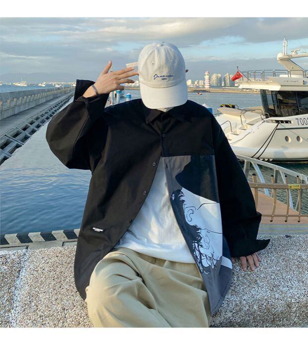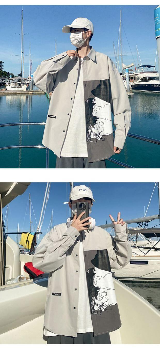 シャツ ルーズスプリングカジュアルジャケット スタイル ロング 大きめサイズ 春物 ASURAプラスサイズメンズ21994634641