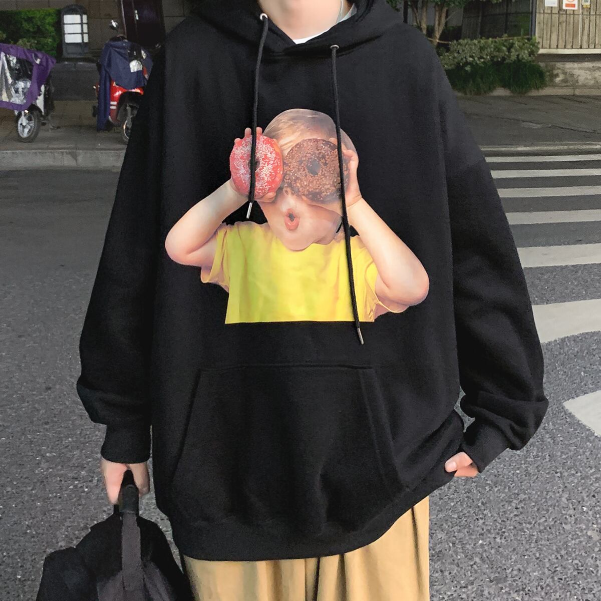 セーター ルーズフードジャケット スプリングオータムホワイト ストリート 大きめサイズ 春物 秋物 キッズ ASURAプラスサイズメンズ96864877166