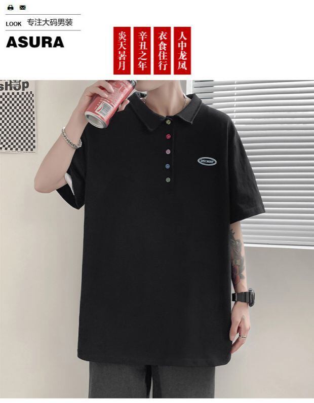 カラーボタンシャツ Tシャツ ルーズサマーコート コットン 大きめサイズ 夏物 ASURAプラスサイズメンズ39927166960