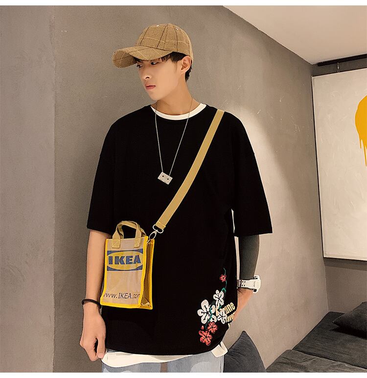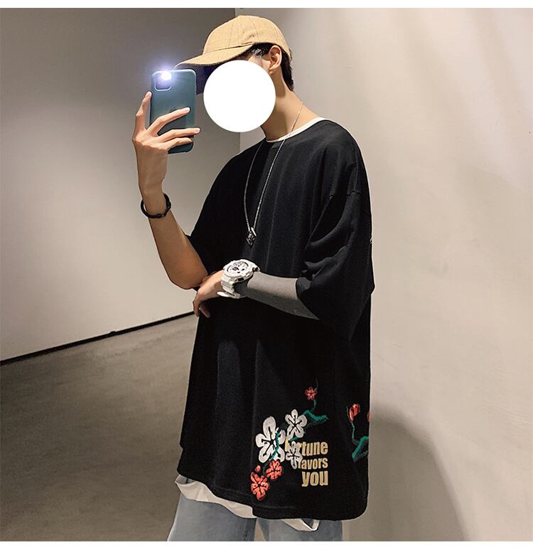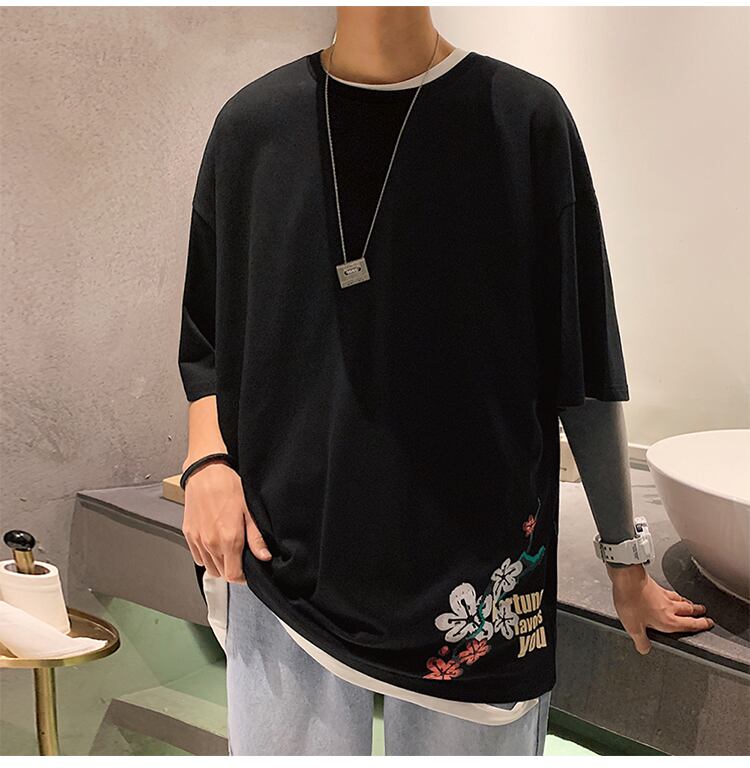 Flowerデザイン Tシャツ ルーズサマースタイル コットン ストリート 大きめサイズ 夏物 フラワーデザイン ASURAプラスサイズメンズ33003615067