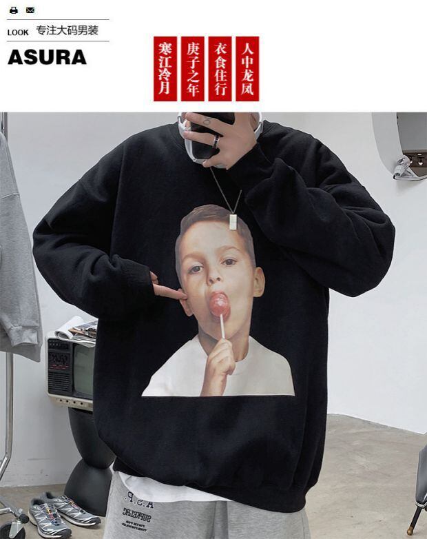 セーター ルーズラウンドネックTシャツ ジャケット スプリングオータム ロング 大きめサイズ 春物 秋物 Oネック ASURAプラスサイズメンズ86894514644