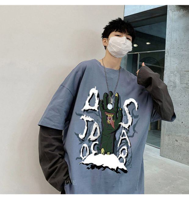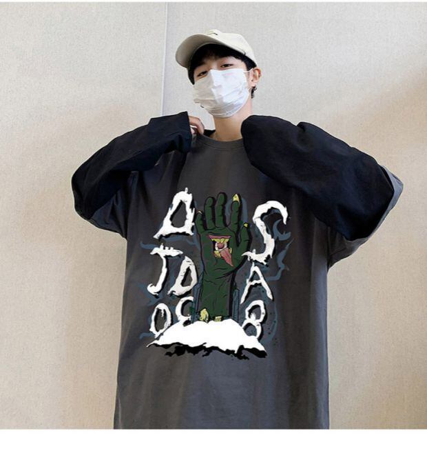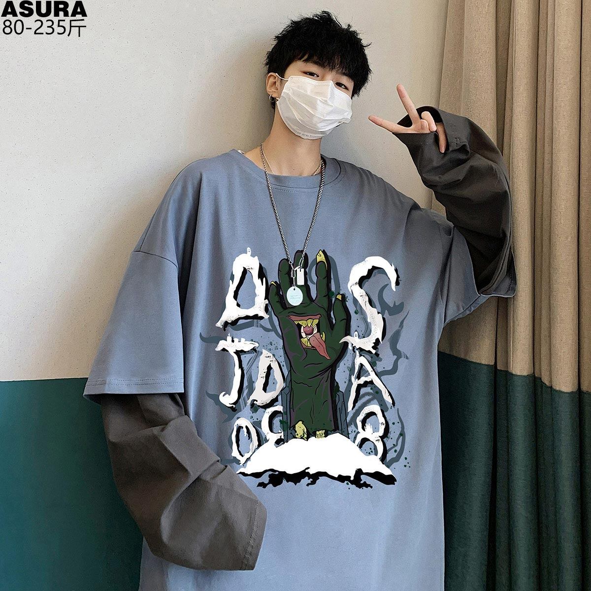 ツーピースTシャツ ルーズラウンドネックスプリングスタイル ロング 春物 Oネック ASURAプラスサイズメンズ42835344614