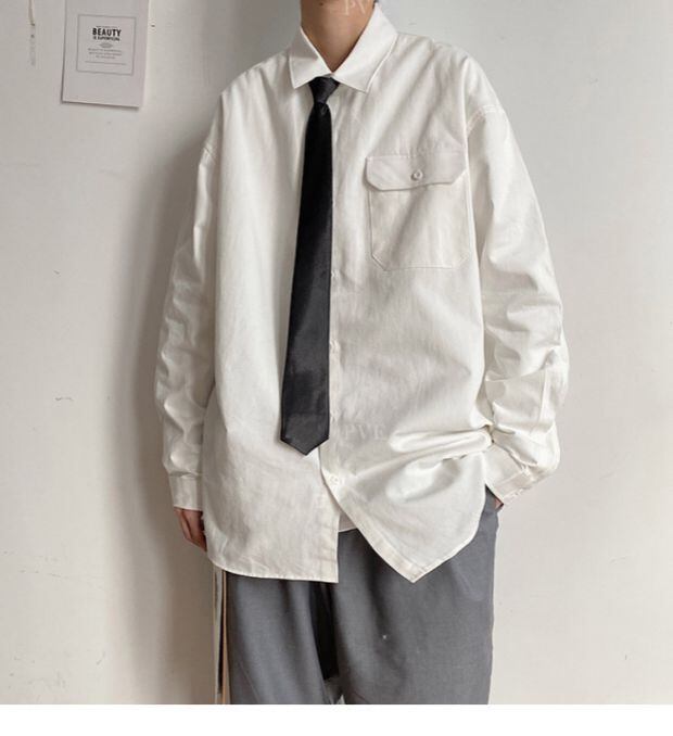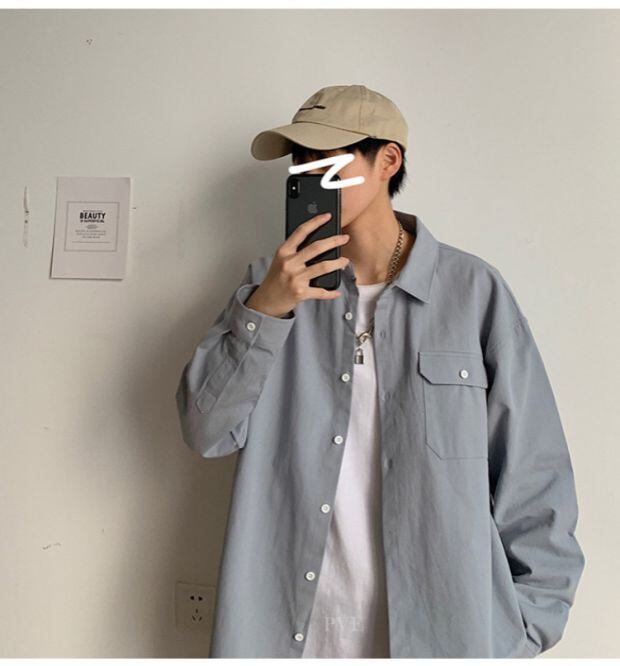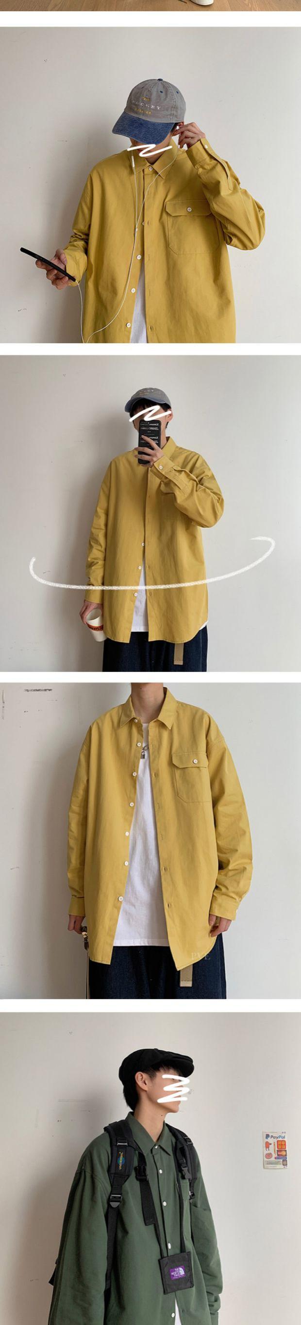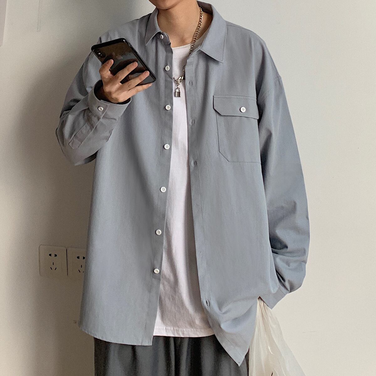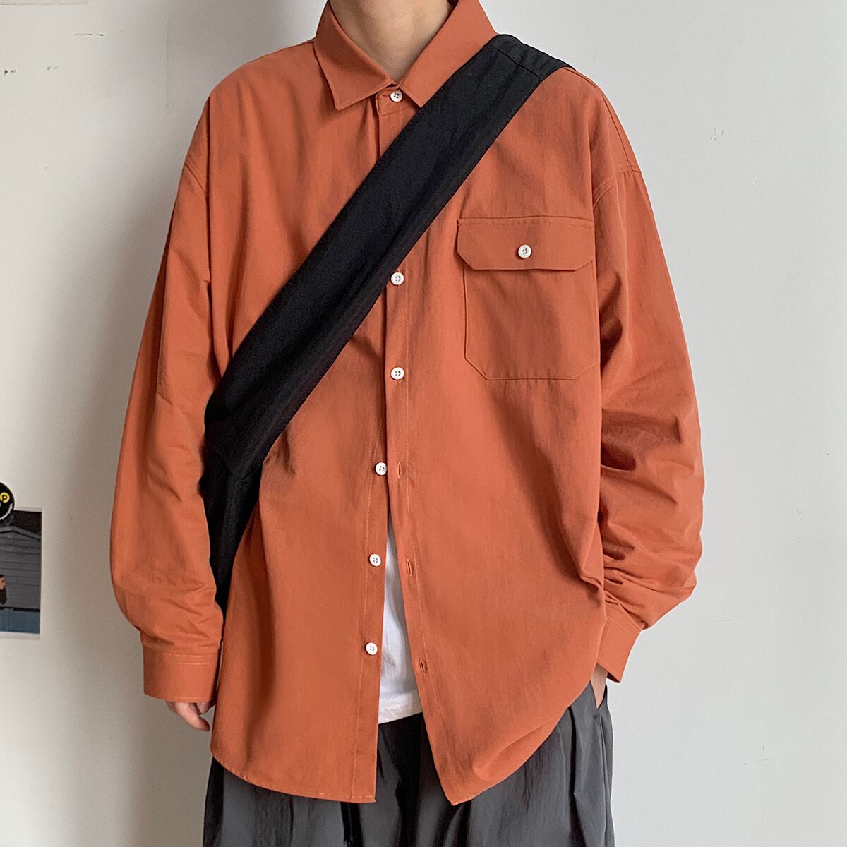 ソリッド カラーシャツ ルーズカジュアルスプリングオータムジャケット スタンダード ロング レトロ 大きめサイズ 春物 秋物 ソリッドカラー ASURAプラスサイズメンズ90641082081