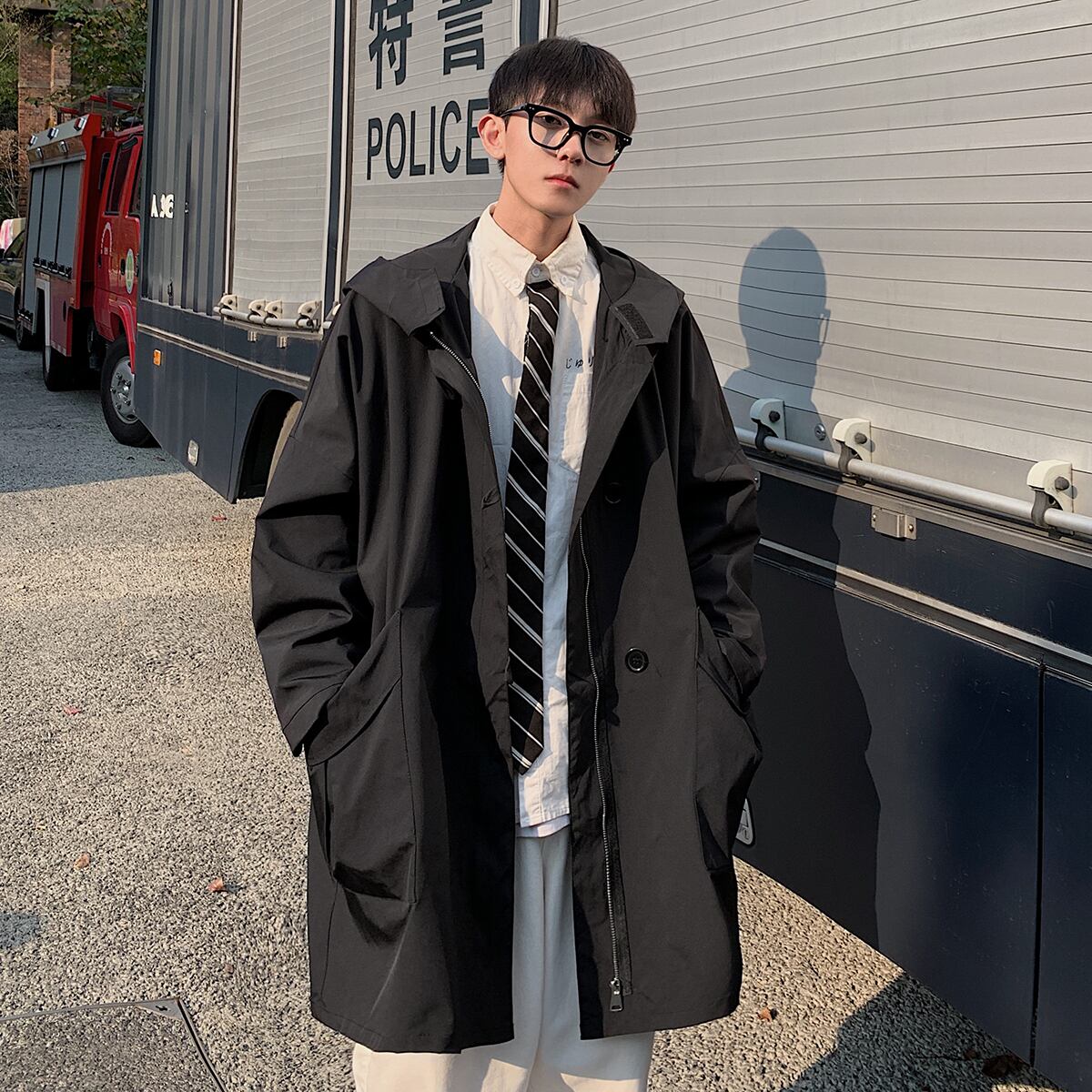 フードジャケット ルーズスプリングスタイル 大きめサイズ 春物 ASURAプラスサイズメンズ35781823180