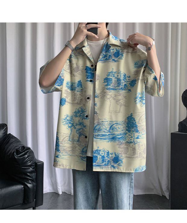 シャツ ルーズスタイルサマー 大きめサイズ 夏物 シルク ASURAプラスサイズメンズ97350756451