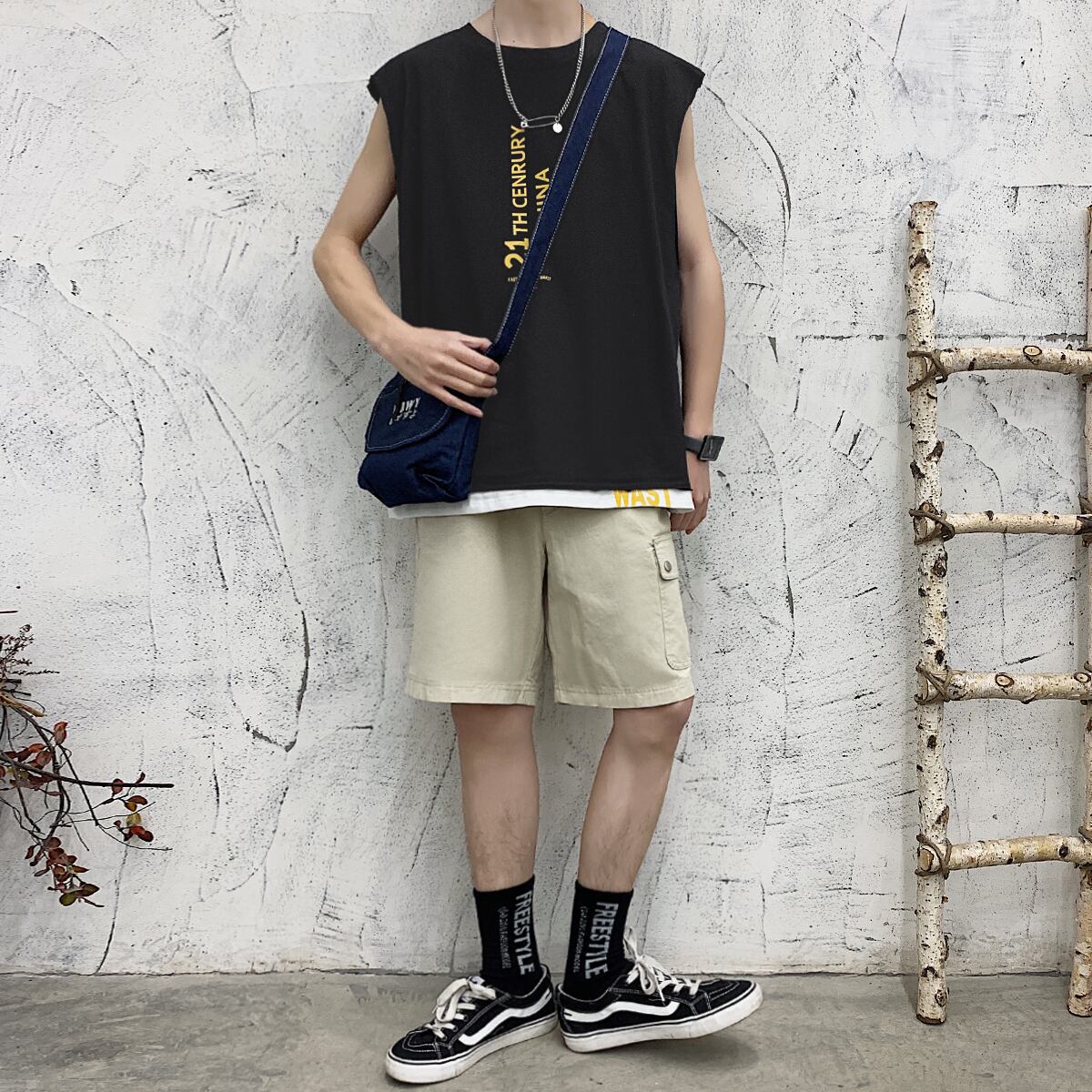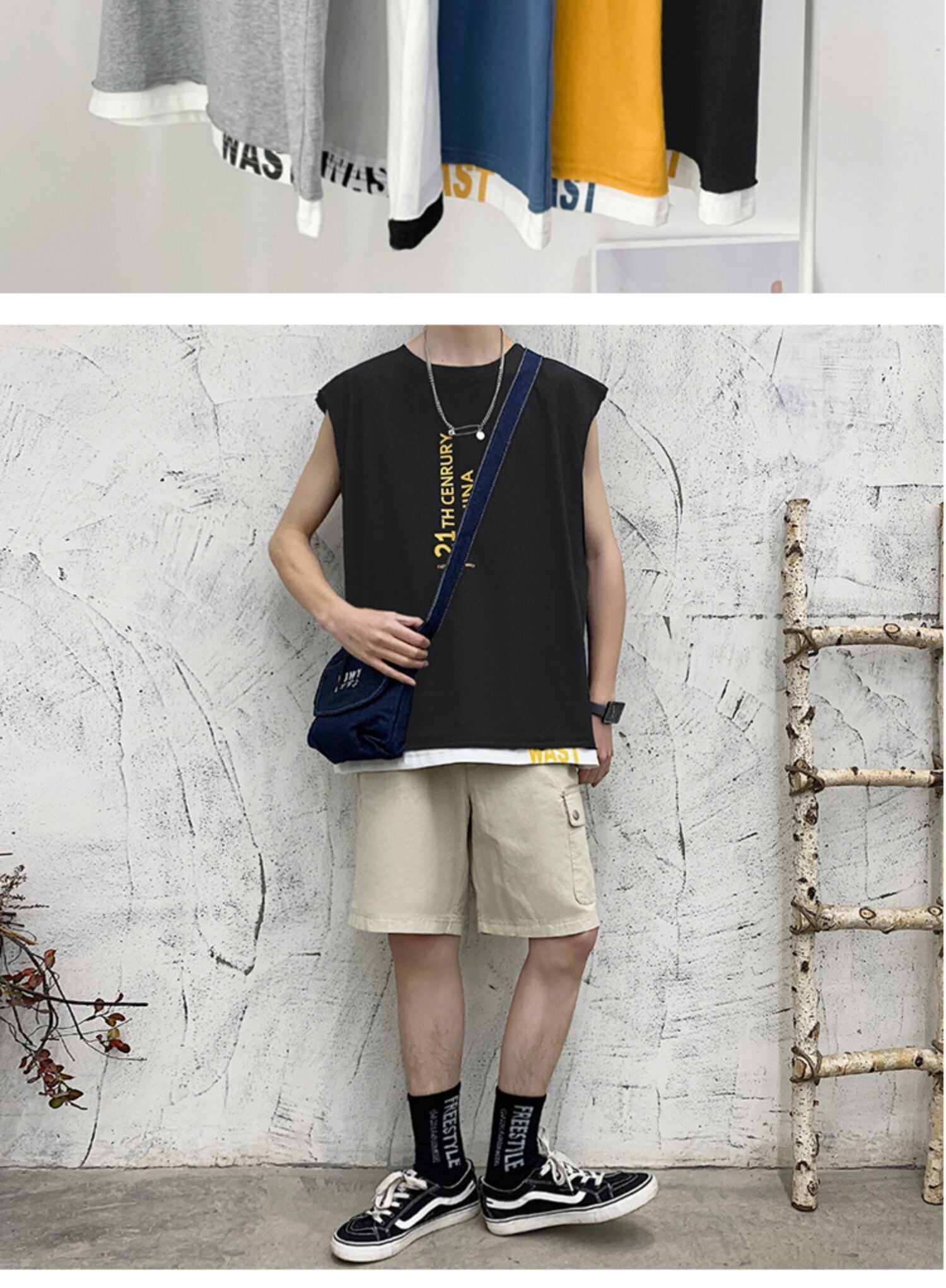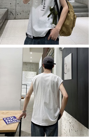 ノースリーブTシャツ ルーズサマー コットン ストリート 大きめサイズ 夏物 ステッチ ASURAプラスサイズメンズ43755072153
