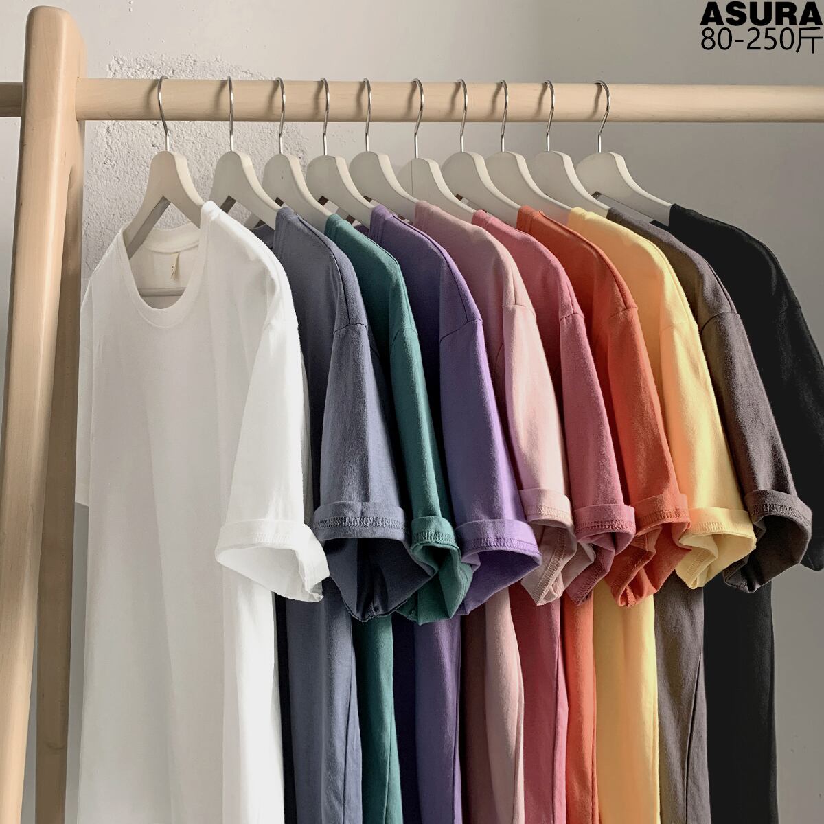 Tシャツ シャツ ルーズラウンドネックベーシックサマー コットン 大きめサイズ 夏物 Oネック ASURAプラスサイズメンズ29528643384