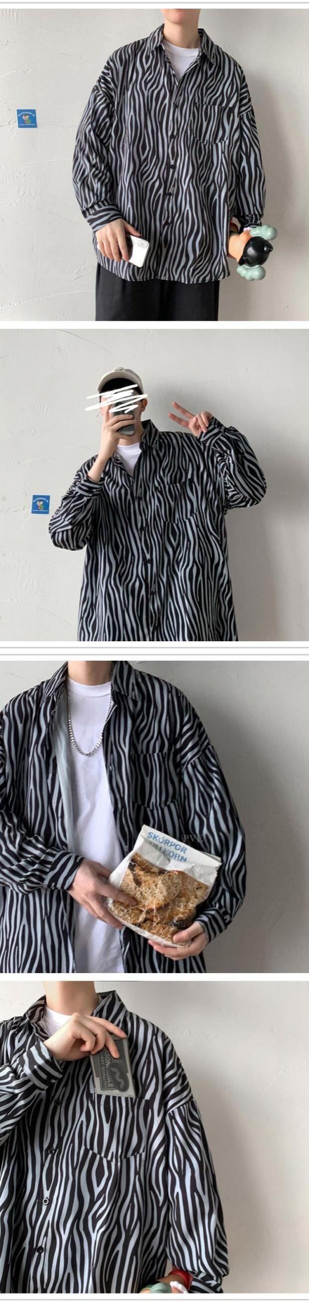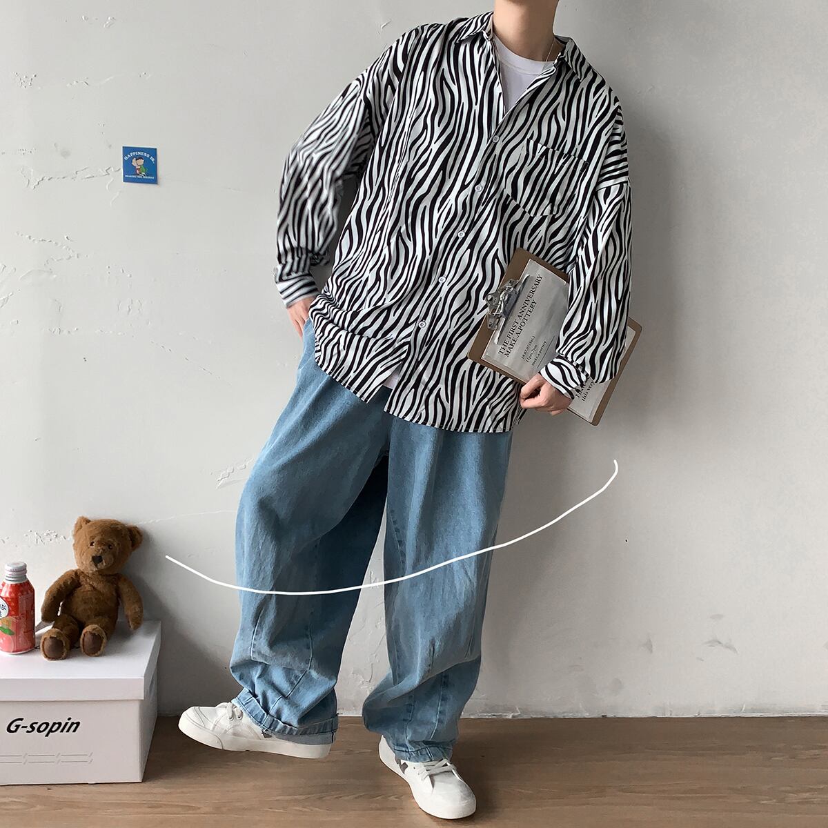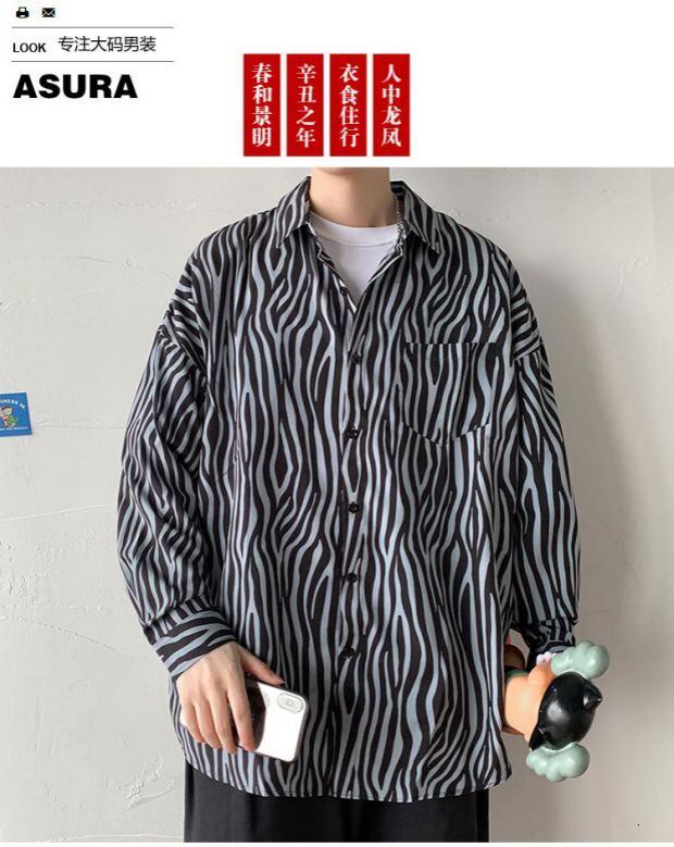 プリント柄シャツ ルーズトップス スプリングオータムスタイル ロング 大きめサイズ 春物 秋物 ASURAプラスサイズメンズ13816251961