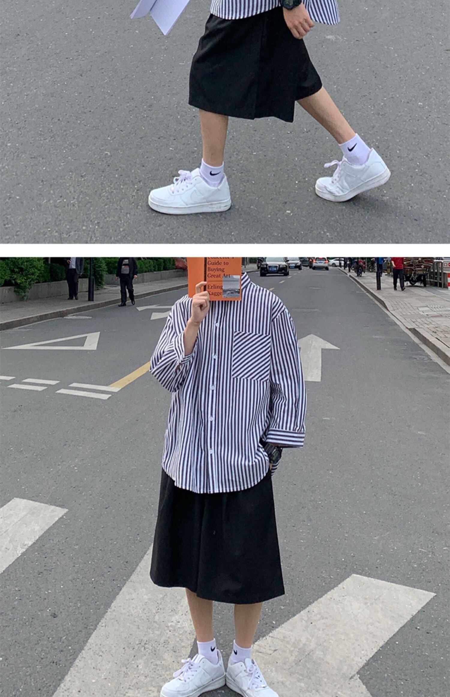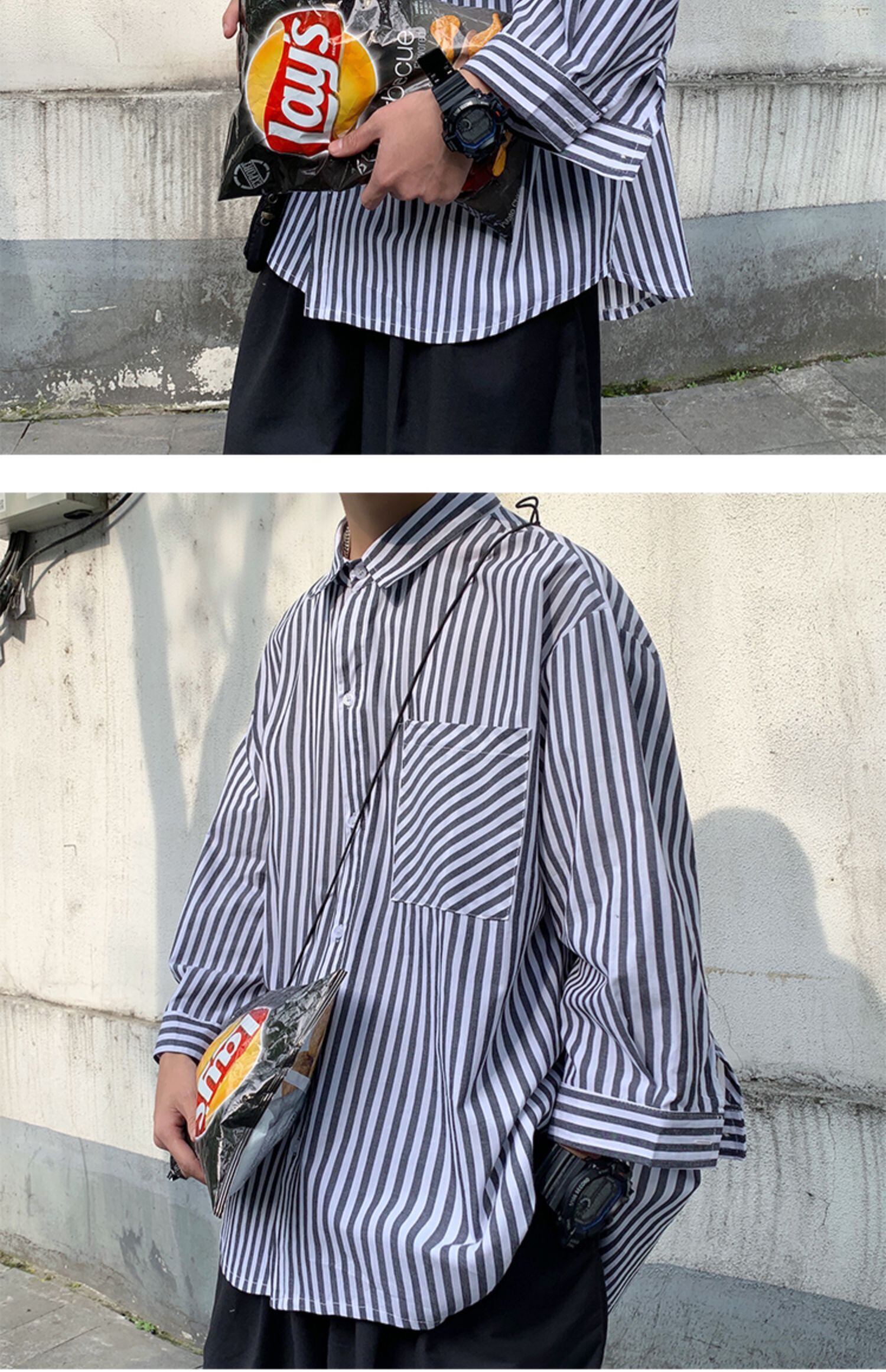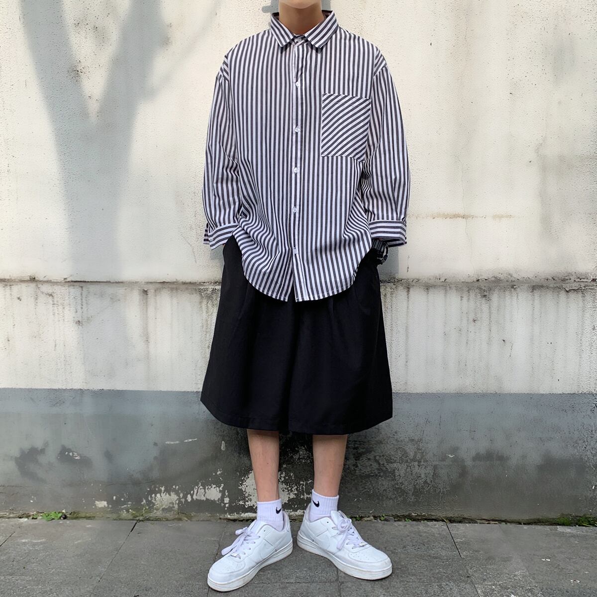 ストライプクロップドシャツルーズスプリングサマースタイル ロング 大きめサイズ 春物 夏物 ASURAプラスサイズメンズ97132543463