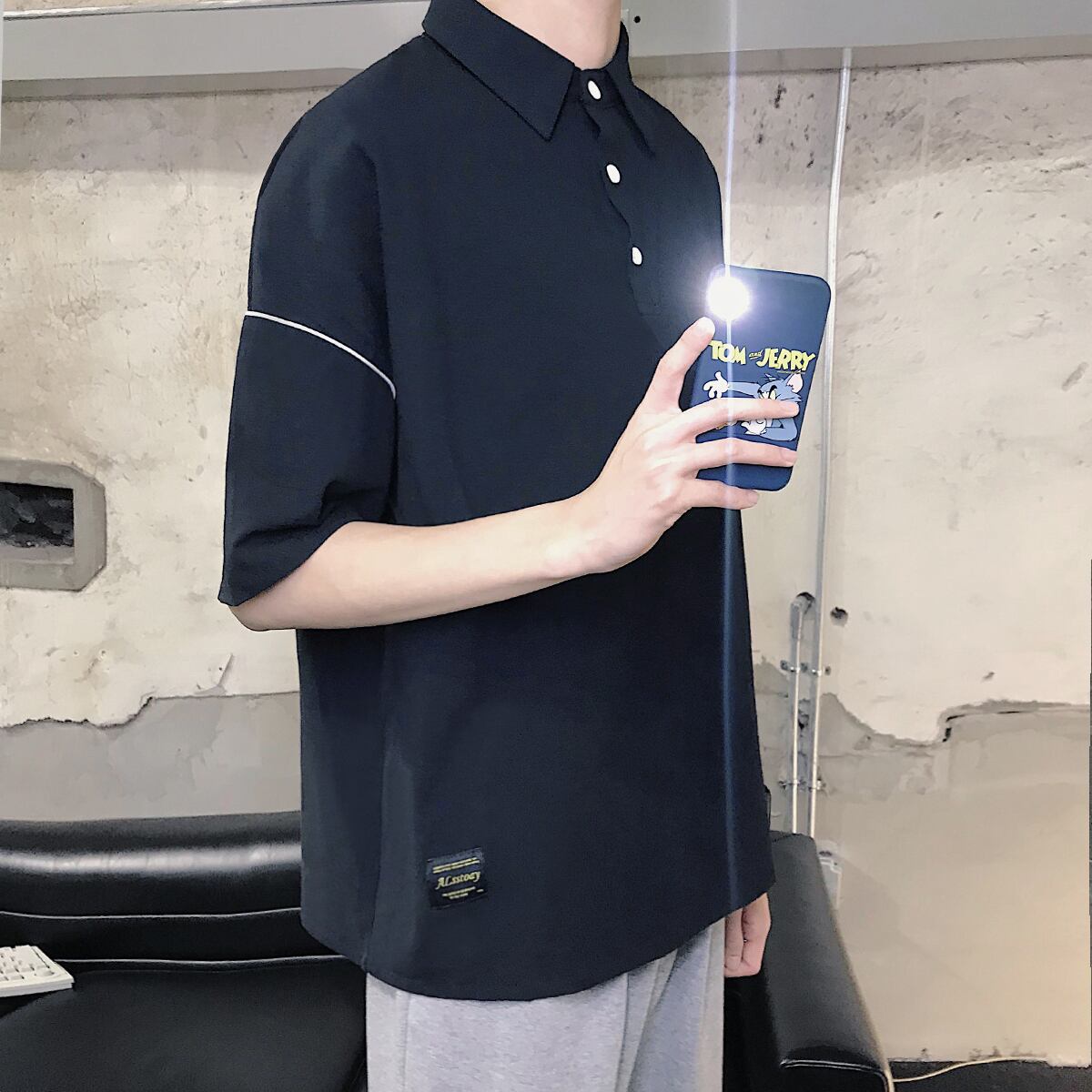 ラインシャツ Tシャツ ルーズサマーカジュアル 大きめサイズ 夏物 ASURAプラスサイズメンズ27593312741