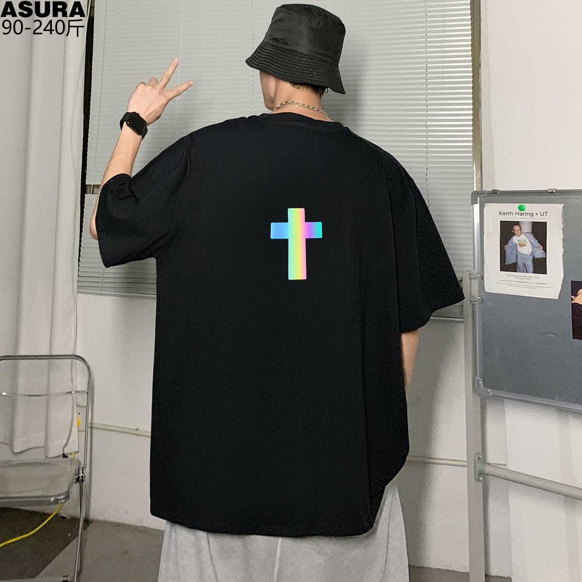 クロスTシャツ ルーズサマー 大きめサイズ 夏物 ASURAプラスサイズメンズ32920203569