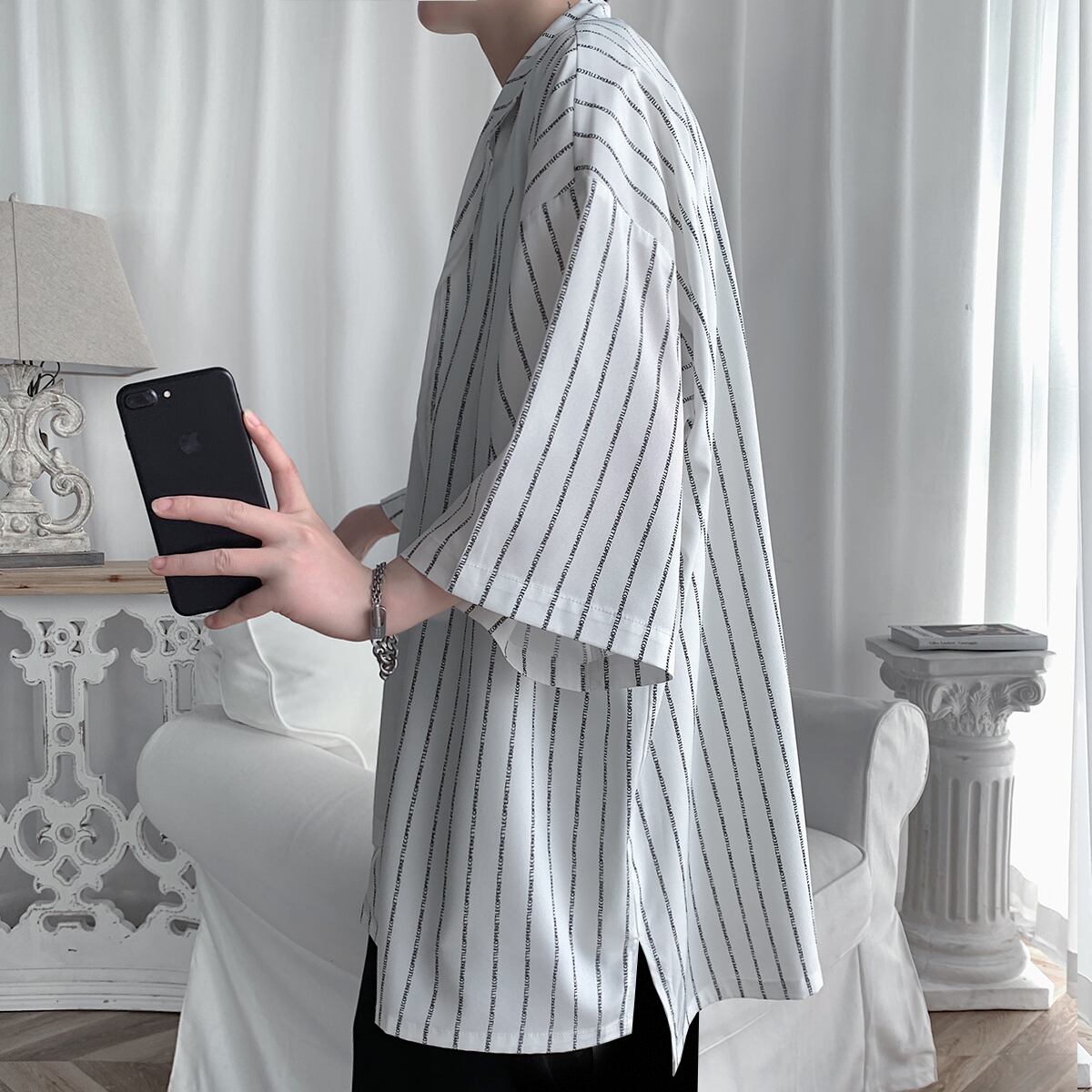 ストライプシャツ ルーズサマー薄手スタイル 大きめサイズ 夏物 シルク ASURAプラスサイズメンズ56048361348