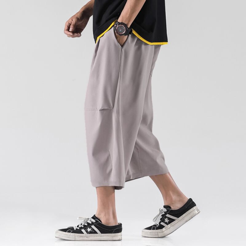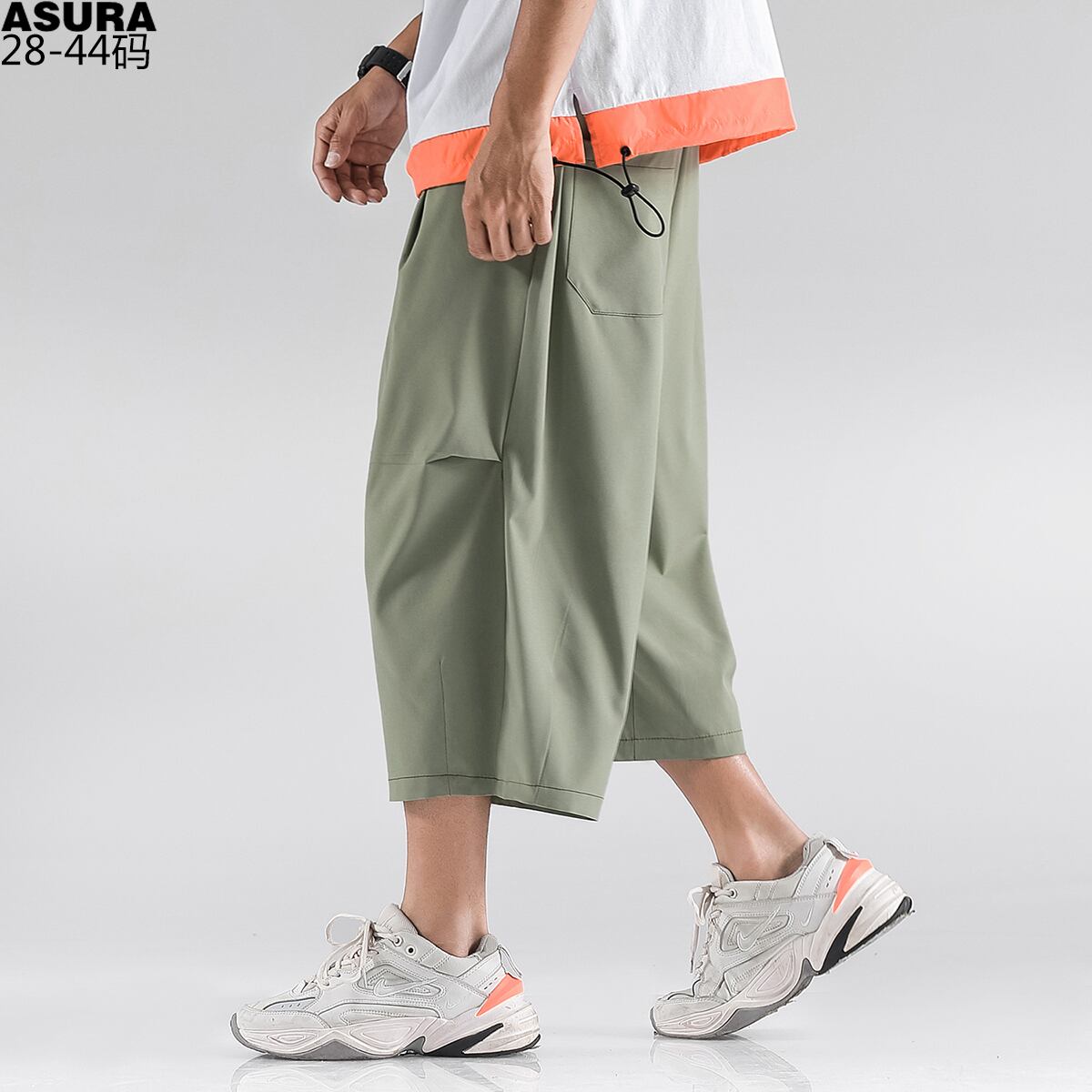 クロップドショーツ ルーズサマーワイドレッグソリッド カラー ストリート 大きめサイズ 夏物 ブルマー ワイドパンツ ソリッドカラー ASURAプラスサイズメンズ25330709508