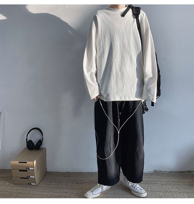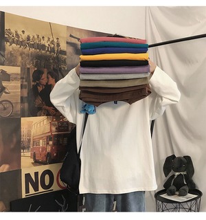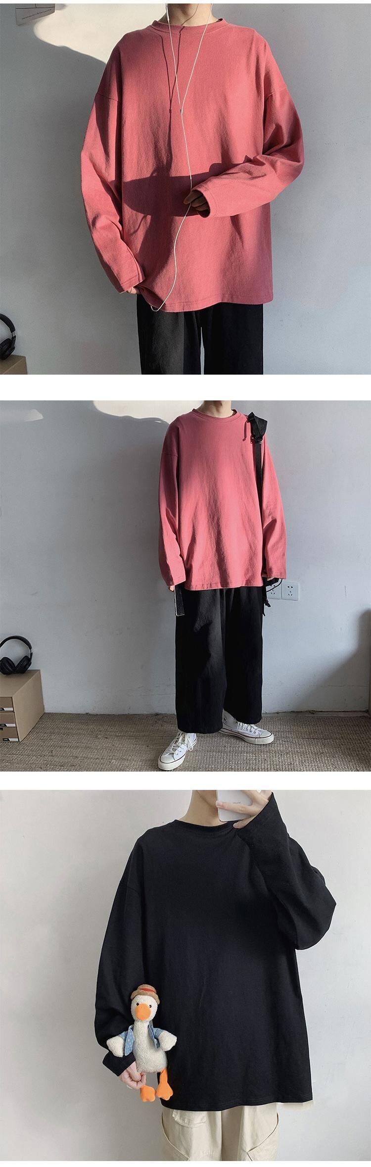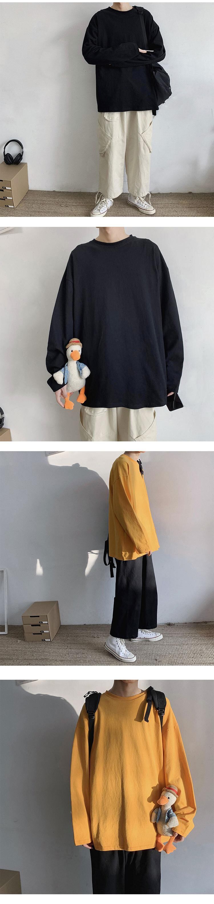 ソリッド カラーTシャツ シャツ ラウンドネックルーズスプリング ロング 大きめサイズ 春物 Oネック ソリッドカラー ASURAプラスサイズメンズ23831628051