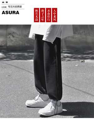 ソリッド カラーカジュアルロングパンツ ルーズスプリング 大きめサイズ 春物 ソリッドカラー ASURAプラスサイズメンズ18514145925