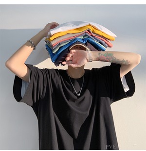 カラー薄手Tシャツ シャツ ルーズサマー コットン 大きめサイズ 夏物 ASURAプラスサイズメンズ23842593974