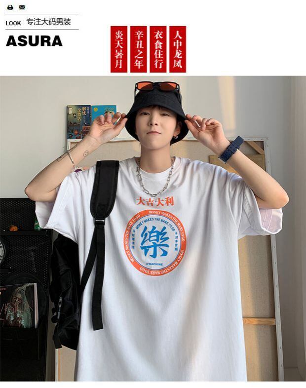 Tシャツ ルーズラウンドネックサマー コットン 大きめサイズ 夏物 Oネック ASURAプラスサイズメンズ94237246744