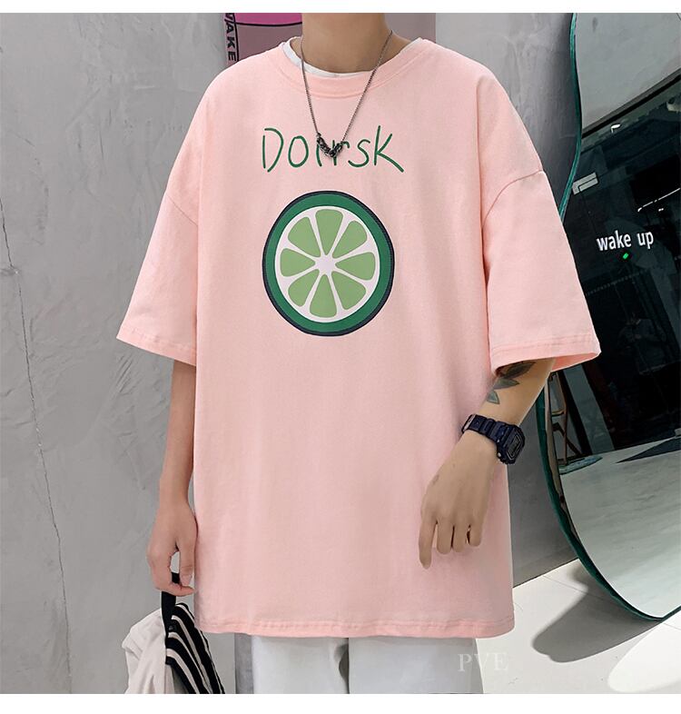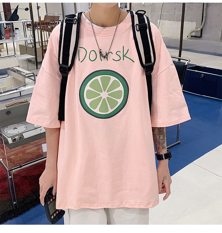 オレンジプリント柄Tシャツ ルーズサマー コットン 大きめサイズ 夏物 ピュア ASURAプラスサイズメンズ24129583115