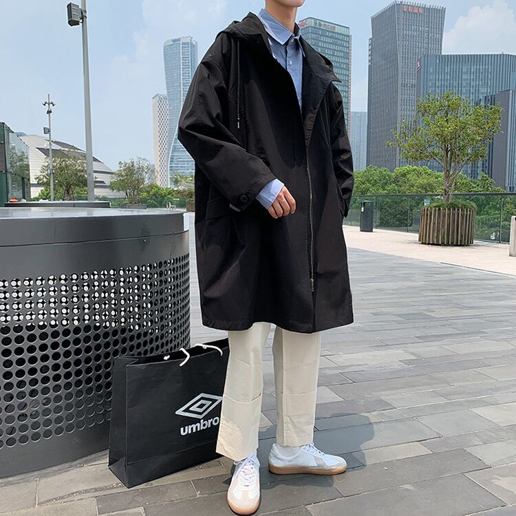 薄手フードジャケット ルーズスプリングオータムスタイル 大きめサイズ 春物 秋物 ASURAプラスサイズメンズ58333421037