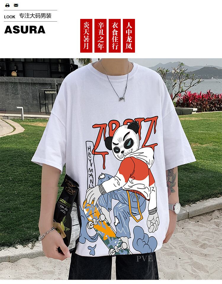 Tシャツ ルーズラウンドネックカジュアルトップス サマー 大きめサイズ 夏物 Oネック ASURAプラスサイズメンズ70816096637