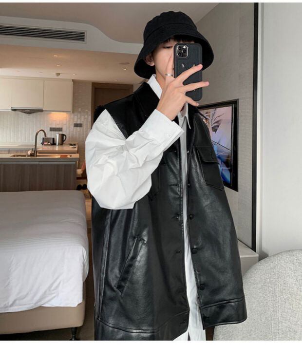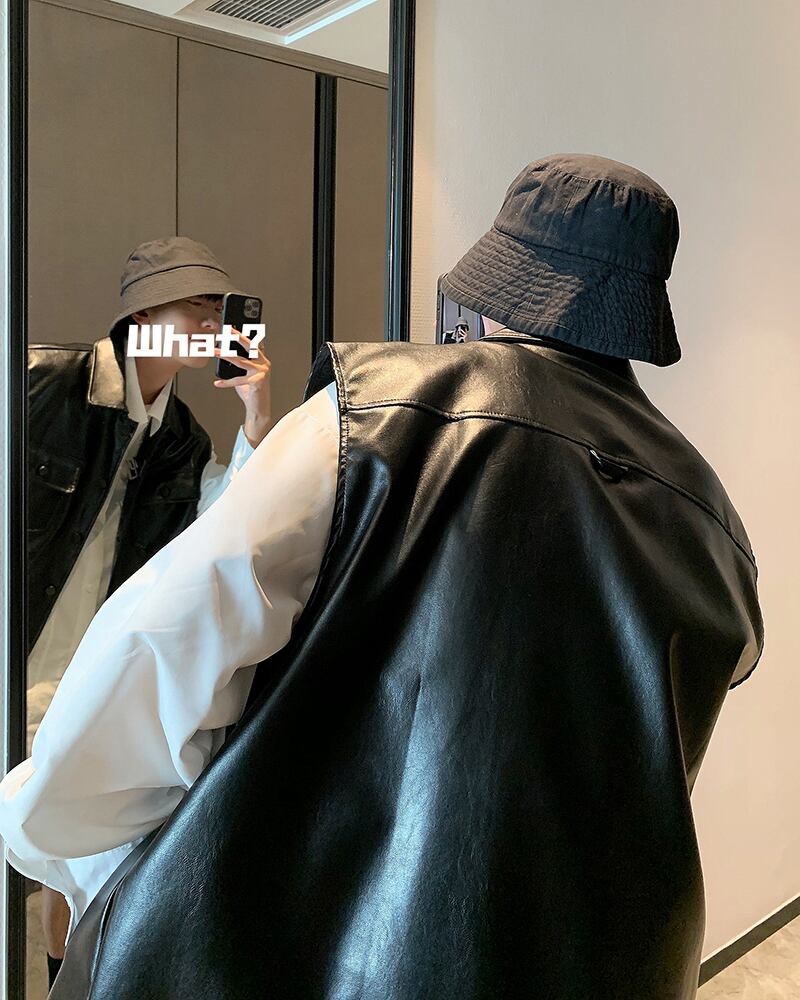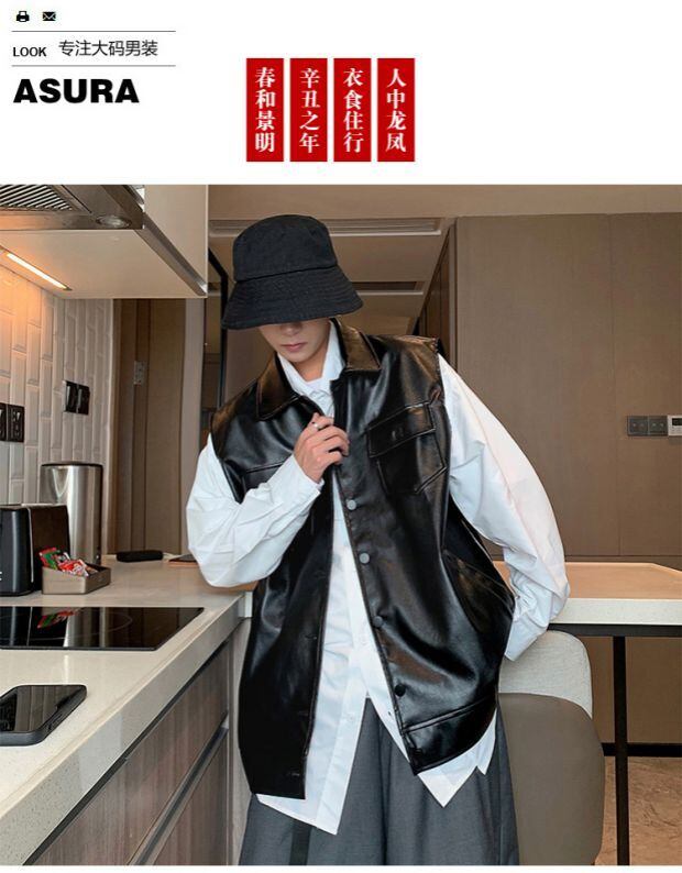 レザーノースリーブジャケット スプリングカジュアルルーズスタイル ストリート 大きめサイズ 春物 ASURAプラスサイズメンズ63588484668