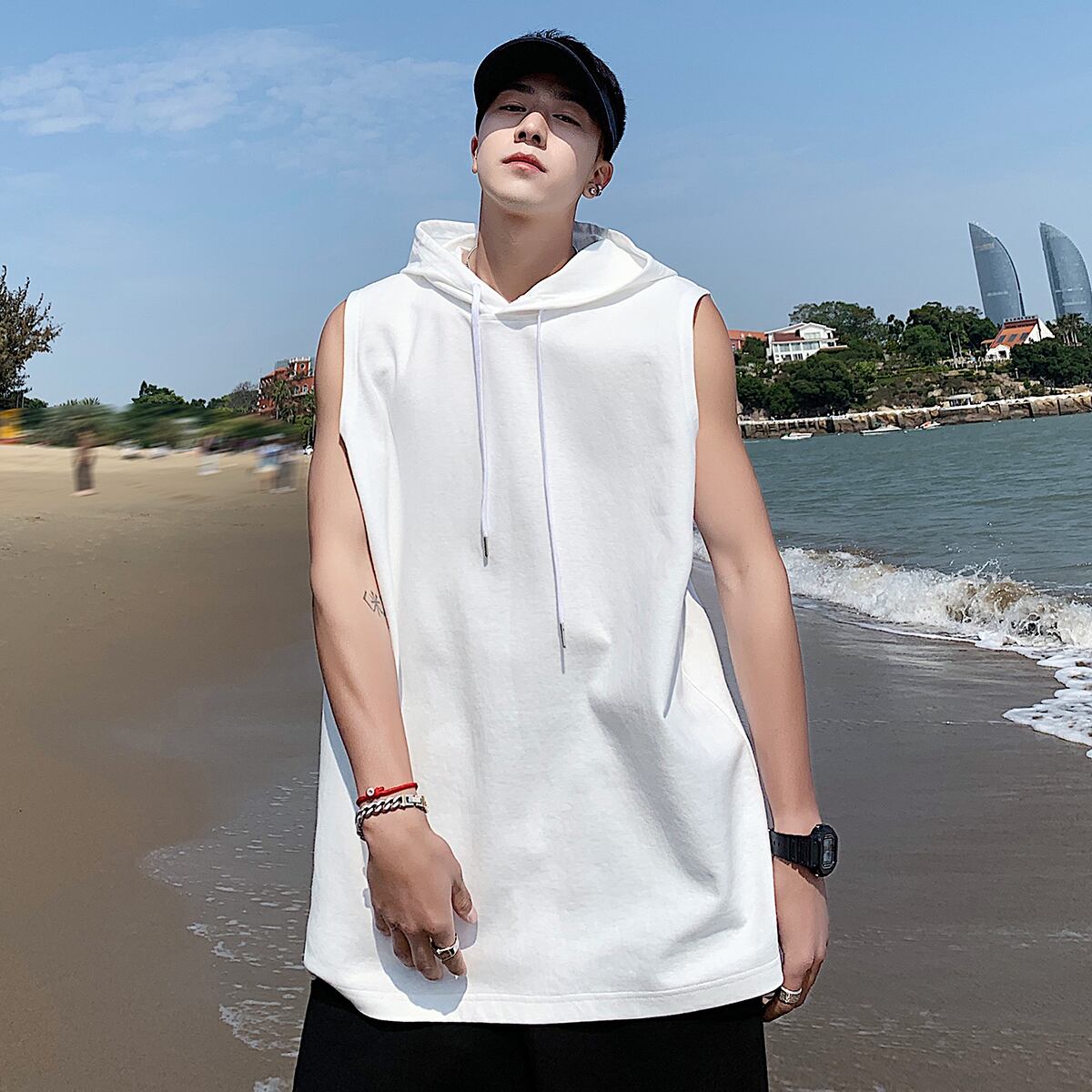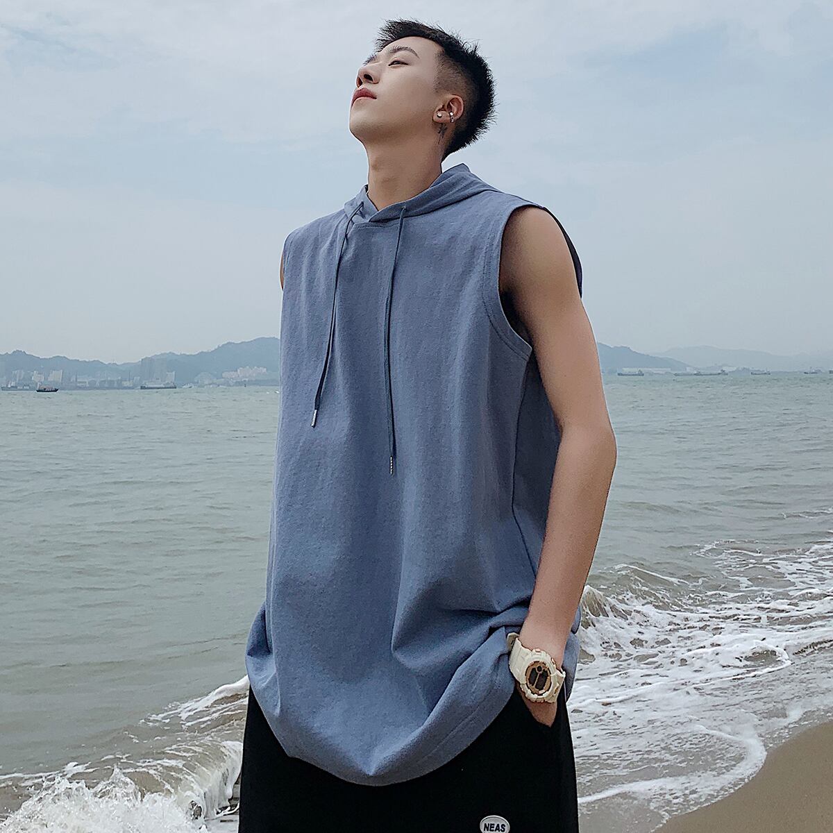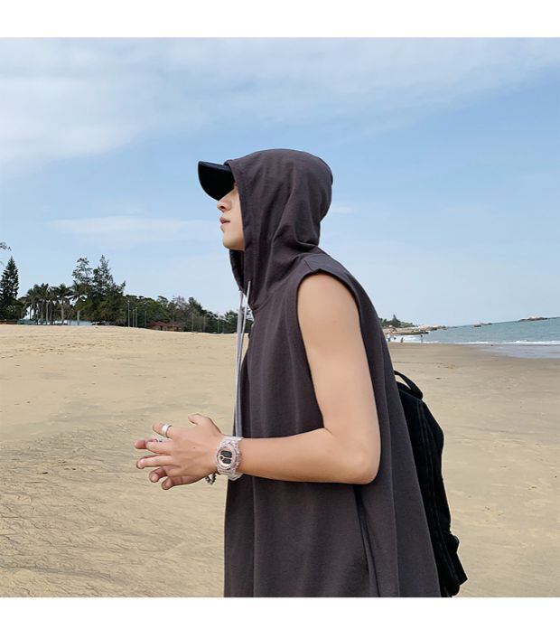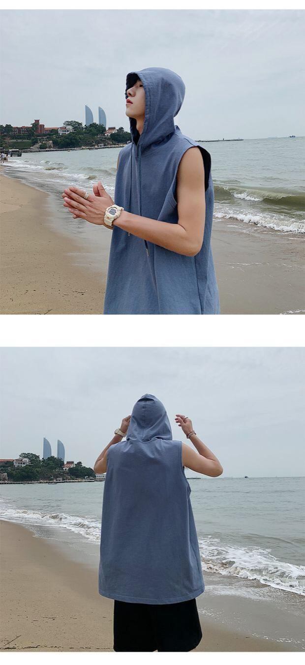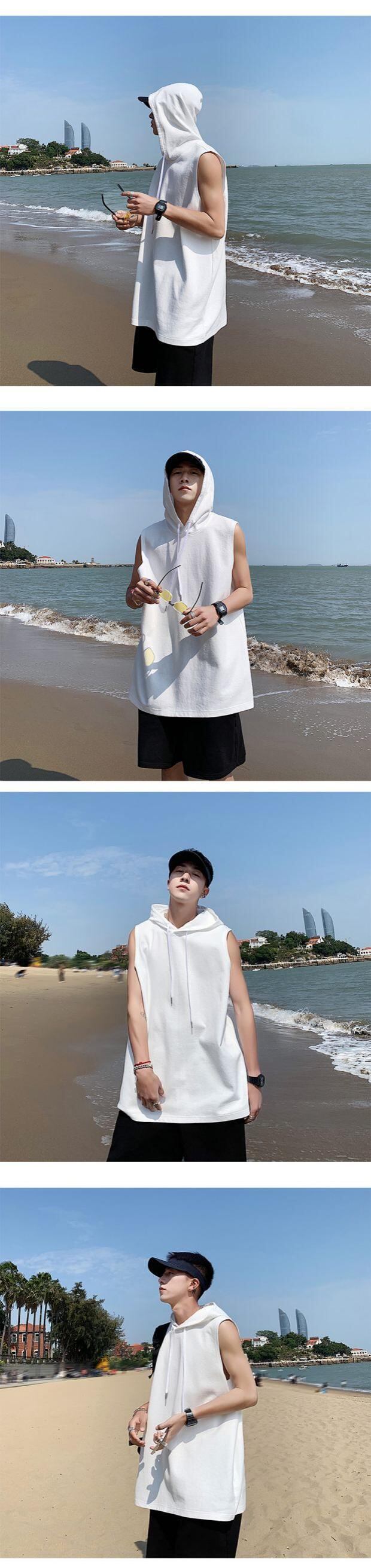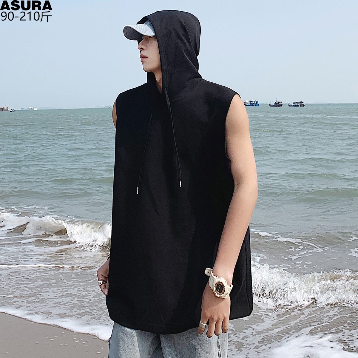 フードスウェット ルーズ薄手ノースリーブTシャツ スタイルサマー 大きめサイズ 夏物 ASURAプラスサイズメンズ72152506801