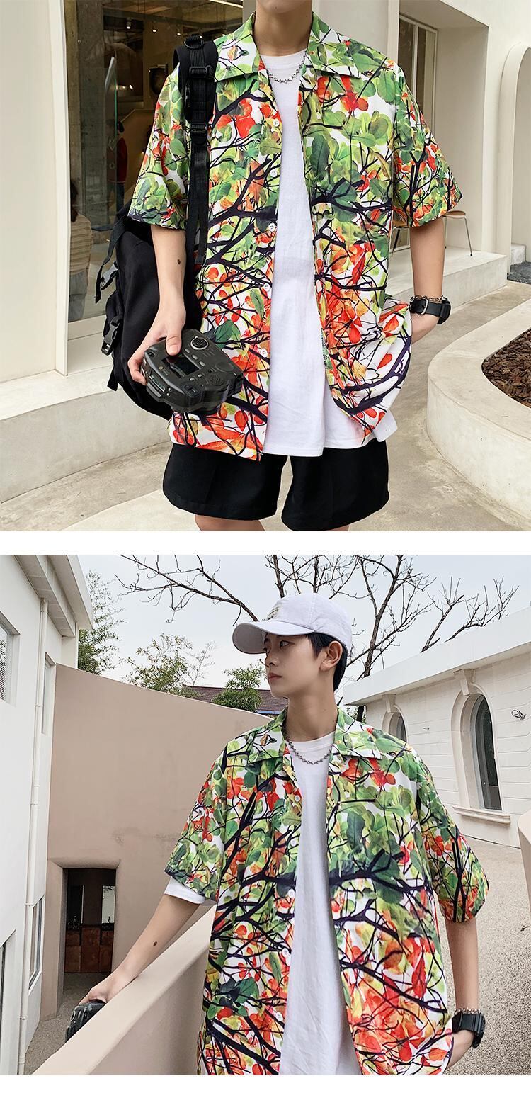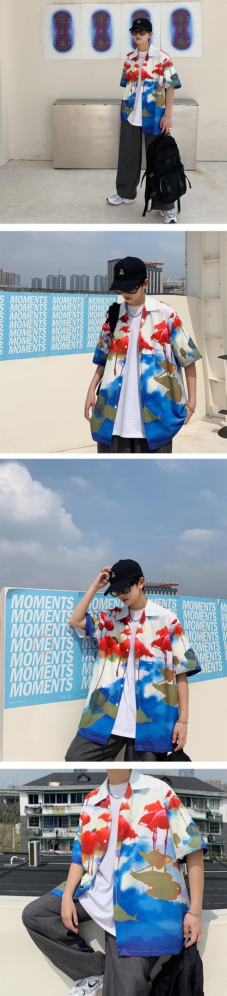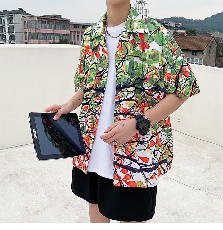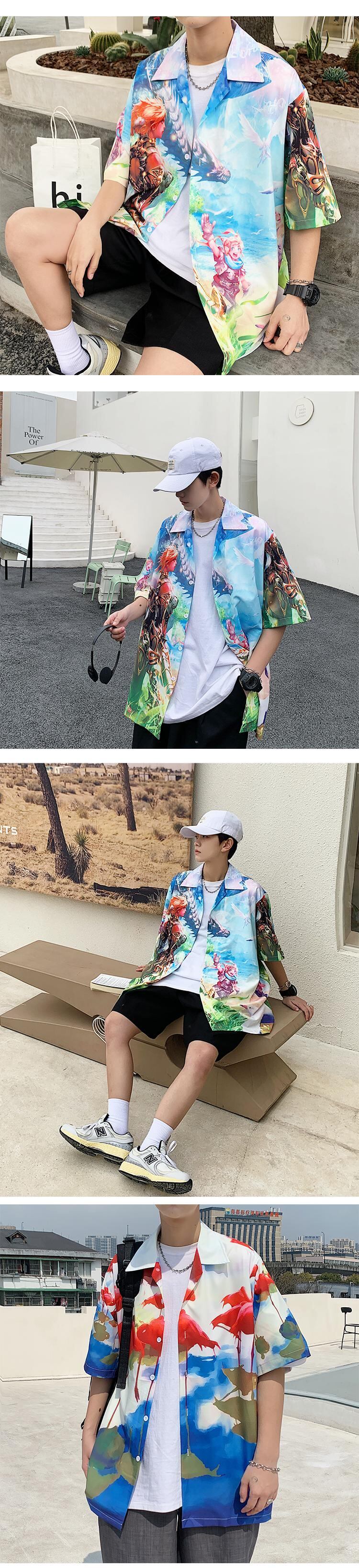 プリントシャツカジュアルルーズジャケット サマー薄手 大きめサイズ 夏物 ビーチ ASURAプラスサイズメンズ29093523110
