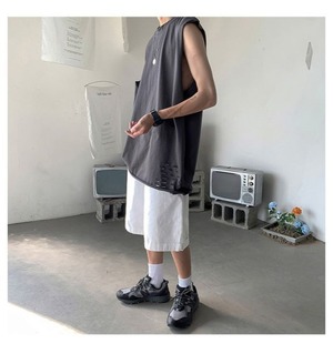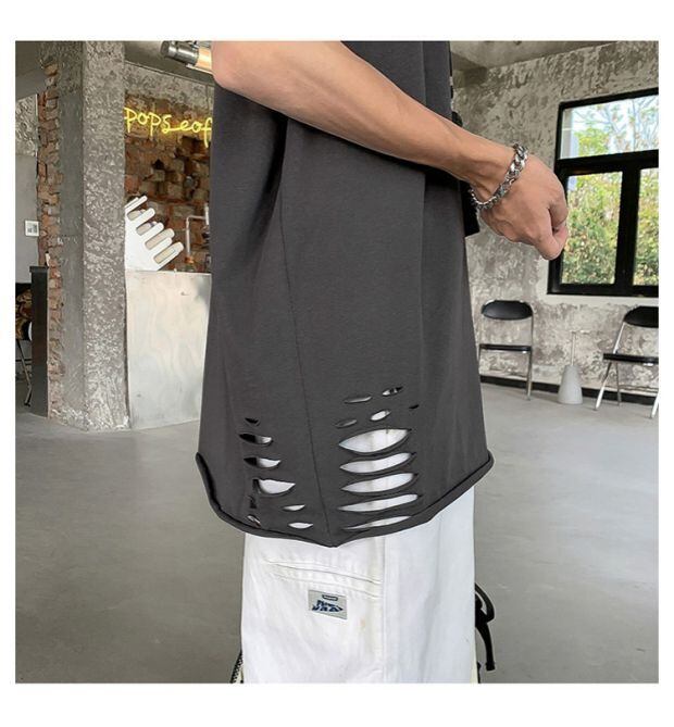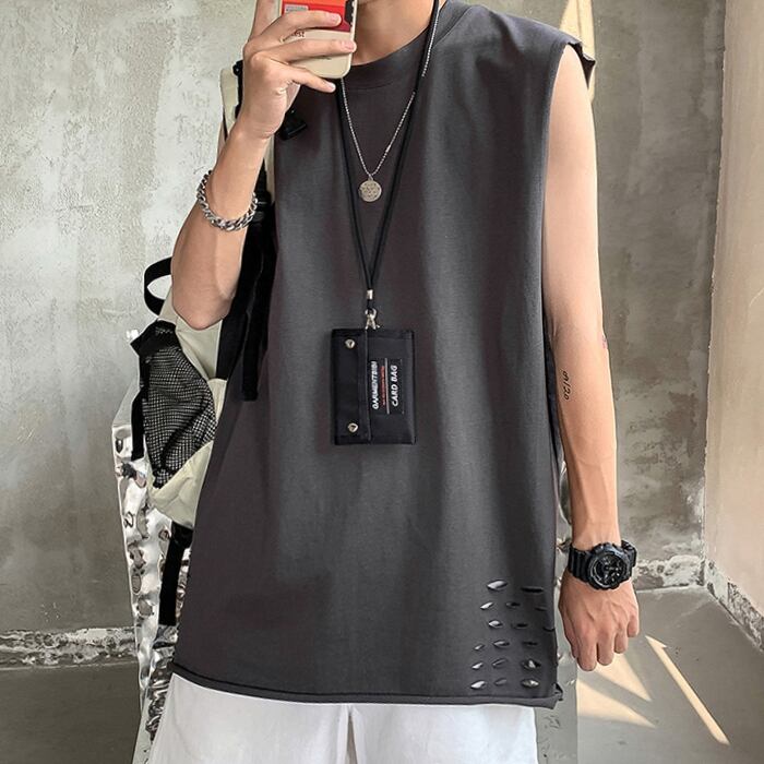 ルーズノースリーブTシャツ サマースタイルダークブラック 大きめサイズ 夏物 ASURAプラスサイズメンズ41573162421