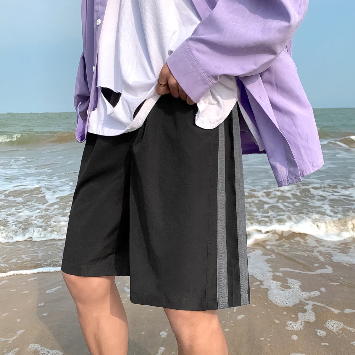 ストライプ薄手パンツ ショーツ カジュアルスタイルルーズサマー 大きめサイズ 夏物 ブルマー ASURAプラスサイズメンズ34244807881