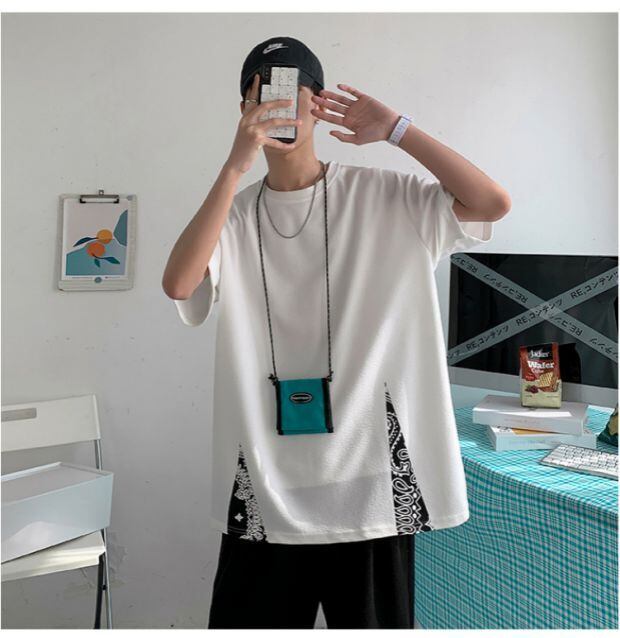 自然派Tシャツ 薄手ルーズサマー ストリート 大きめサイズ 夏物 シルク ASURAプラスサイズメンズ64034430052
