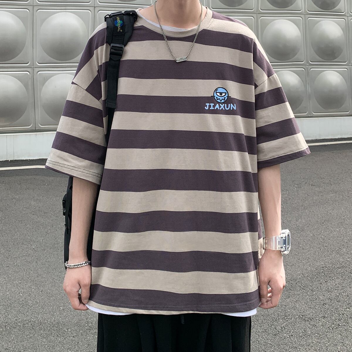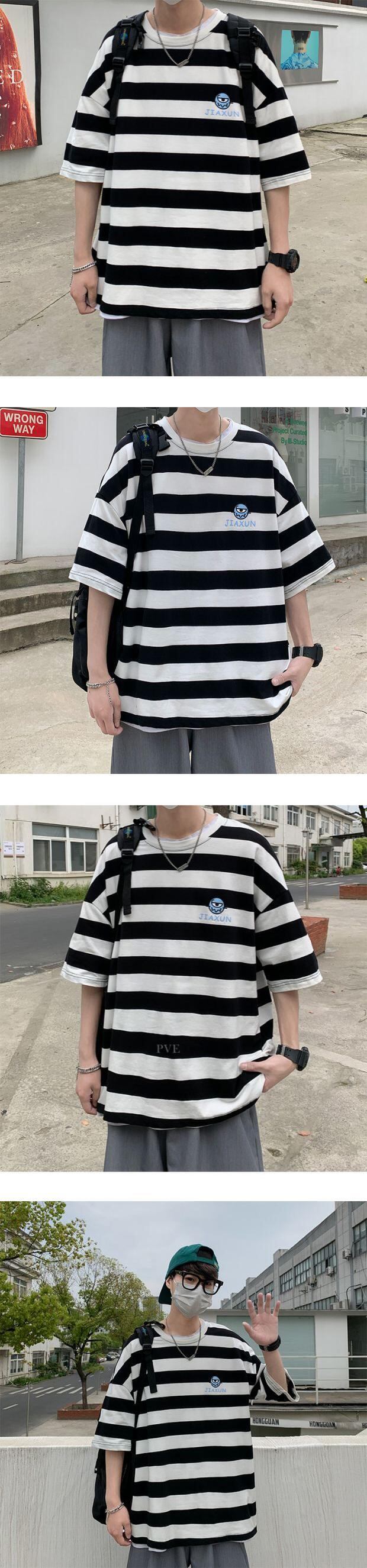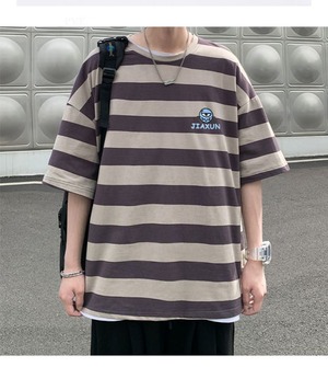 ストライプTシャツ ルーズサマースタイル 大きめサイズ 夏物 ASURAプラスサイズメンズ43317254575