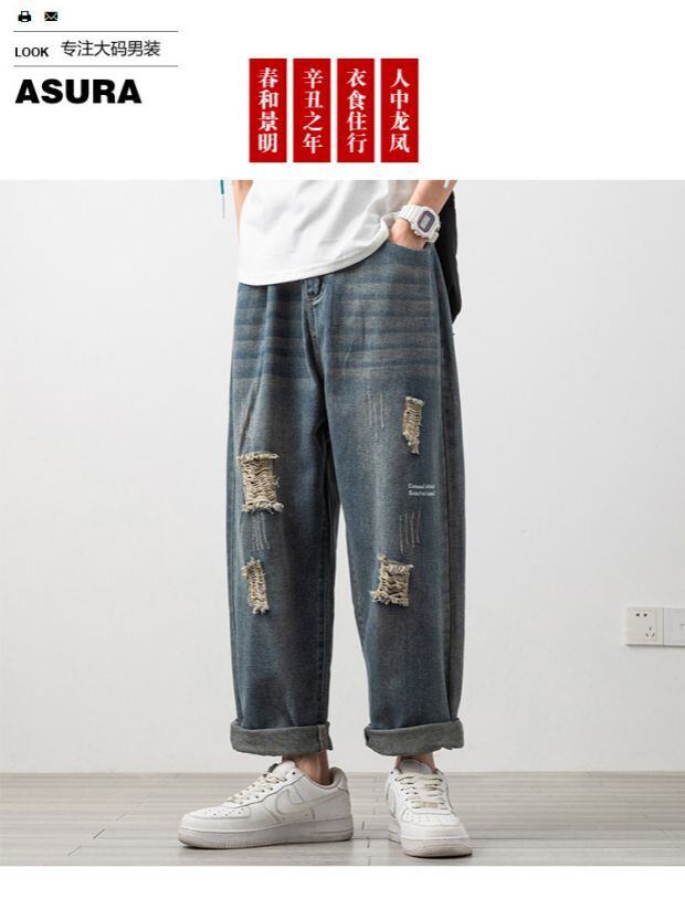 ジーンズ ロングパンツ ルーズスプリングサマーカジュアルスタンダード レトロ 大きめサイズ 春物 夏物 ASURAプラスサイズメンズ78260341607